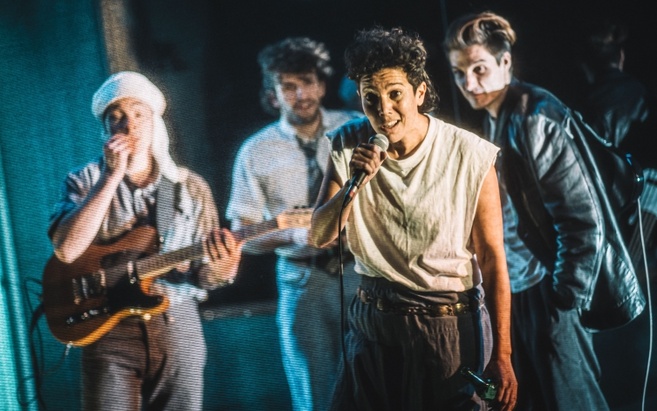 Après Et le cœur fume encore et deux spectacles consacrés à la décolonisation, la compagnie Nova poursuit sa réflexion sur les identités françaises et nos transmissions mémorielles avec le troisième volet de son triptyque Écrire en pays dominé. Plongeant dans le virage de l’année 1983, année charnière sur le plan économique, politique et social, Alice Carré et Margaux Eskenazi questionnent l’engagement et les luttes – contre le racisme, ouvrières et médiatiques – des années 1980 à nos jours. Huit comédien·ne·s déploient un récit nourri d’un travail de recherche, d’enquête et de rencontre de témoins, à la jonction de l’intime et du collectif. Dans une architecture urbaine, évoquant les locaux d’une radio, l’intérieur d’un salon ou une scène de concert en plein air, ils sont tour à tour militant·e·s, journalistes ou ouvrier·ère·s. Il sera question de la rigueur, de la marche pour l’égalité et contre le racisme, de la montée du Front National ou encore de la grande heure du rock. À travers une lecture politique sans didactisme ni simplification, 1983 dresse le portrait d’une époque mouvementée pour interroger aujourd’hui.
