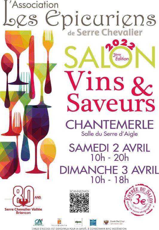 Depuis plus de 3 ans, le salon des vins et saveurs, sélectionne le meilleur de la viticulture, aux côtés des meilleurs artisans gastronomiques. L’objectif : faire de cette manifestation une rencontre privilégiée entre producteurs et consommateurs. Un rassemblement d'une trentaine d'exposants vignerons et métiers de bouche, venus des quatre coins de la France.Ce bel évènement, soutenu par l’Office du Tourisme, est organisé par l’association «Les Épicuriens de Serre Chevalier» se tiendra du samedi 2 au dimanche 3 avril 2022.