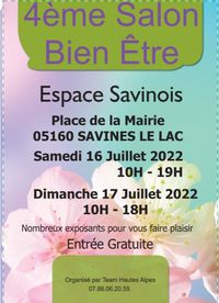 le samedi 16 et le dimanche 17 juilletà l'Espace Savinois de Serre-Ponçon, des exposants dans le bien être et le naturel : thérapeutes, produits bio, alimentation ,voyance etc....seront présents pour vous offrir un week-end de sérénité et de découverte. Entrée Gratuite. Ghyslaine, présidente de l'association "Team 05" et organisatrice du salon bien être, répond aux questions de Laura Giraud.
