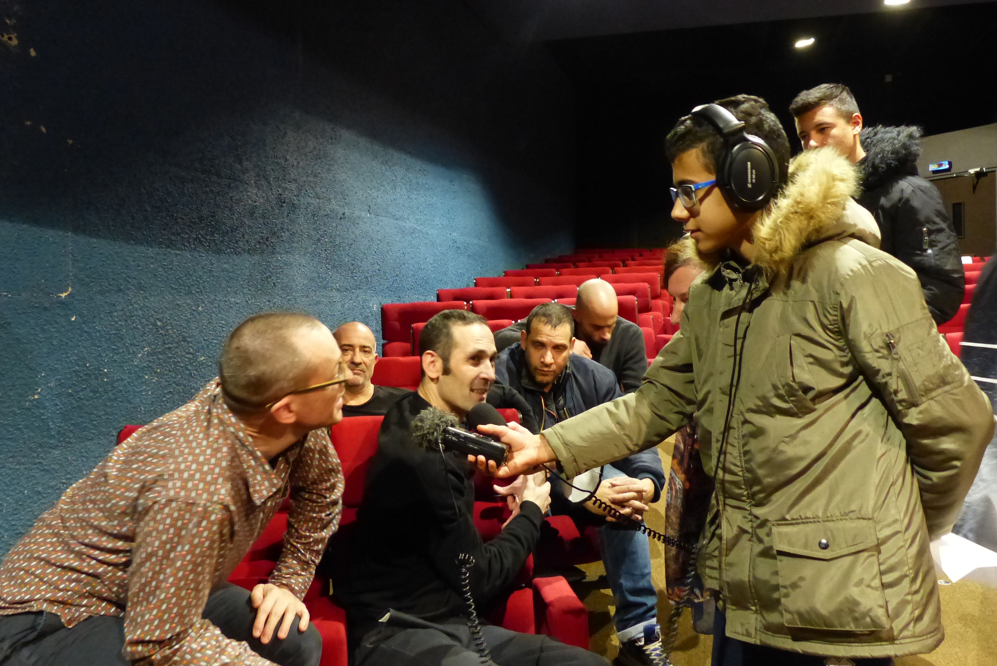 Le Théâtre du Briançonnais et Fréquence Mistral ont confié le micro à de jeunes reporters de 12 à 15 ans. A l’occasion de quatre spectacles, ils vont interroger les artistes et le public puis participer au montage des émissions. Les adolescents ont préparé les questions avec leurs animateurs de l’Espace jeunesse et ont planché avec l’équipe de la radio pour apprendre à utiliser le matériel d’enregistrement. Le 30 janvier 2018 s’est déroulée la première interview pour les jeunes du Centre Socio-Culturel de la Communauté de Communes du Pays des Ecrins. Ils ont rencontré les musiciens de Kit de Survie, programmé par le Théâtre du Briançonnais dans le cadre de l’Altitude Jazz Festival.Un groupe composé du guitariste Serge Teyssot-Gay, Médéric Collignon au cornet, bugle et beatbox, Akosh S au saxo et le batteur Cyril Bilbeaud. Des musiciens appuyés par Mike Ladd et Marc Nammour qui ont slammé leur textes en français et en anglais. Une rencontre jazz, rock et slam pour une soirée à l’énergie explosive et engagée. Dans une ambiance très conviviale, Luc, Naïm et Ayssa (avec un petit coup de main de Susannah) ont interviewé Kit de Survie juste après les balances, et un peu avant l’entrée en scène. Et avec un nom pareil, les artistes auraient pu aussi faire du ski à Briançon en toute sécurité… Naïm et Luc ont ensuite recueilli les impressions du public après le concert.