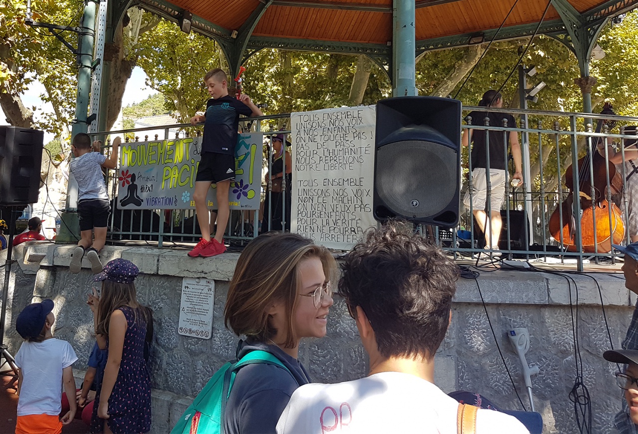 - Au kiosque : Alternances de musique live, déclamation, prises de parole...