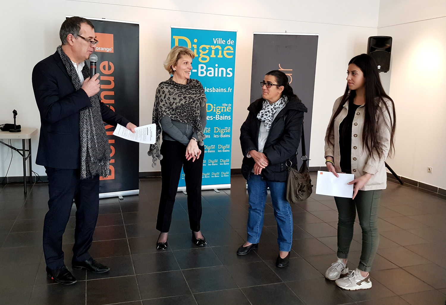 Environ 400 foyers et entreprises de la ville sont d’ores et déjà raccordables, et peuvent bénéficier d’un confort de débit et d’usages innovants. Le reste de la commune le sera progressivement jusqu’en 2020. Ainsi les quartiers du Centre-ville, Champourcin, Les Arches, le Pigeonnier et les Thermes ont maintenant accès à la fibre. Richard Valette, Délégué régional d’Orange, Patricia Granet-Brunello, maire de Digne et plusieurs élus étaient réunis à la veille des fêtes de Noël en l’honneur du 1er client en fibre optique. Et c’est plus précisément une jeune cliente domiciliée avenue des charrois. Ana-Sofia Ferreira est étudiante, un beau symbole, elle bénéficie d’un abonnement gratuit de deux mois chez Orange et d’un chèque cadeau d’une valeur de 100 €. Je vous propose d’écouter Richard Valette, puis le témoignage d’Ana-Sofia. Reportage Odile Frison. Richard Valette.
