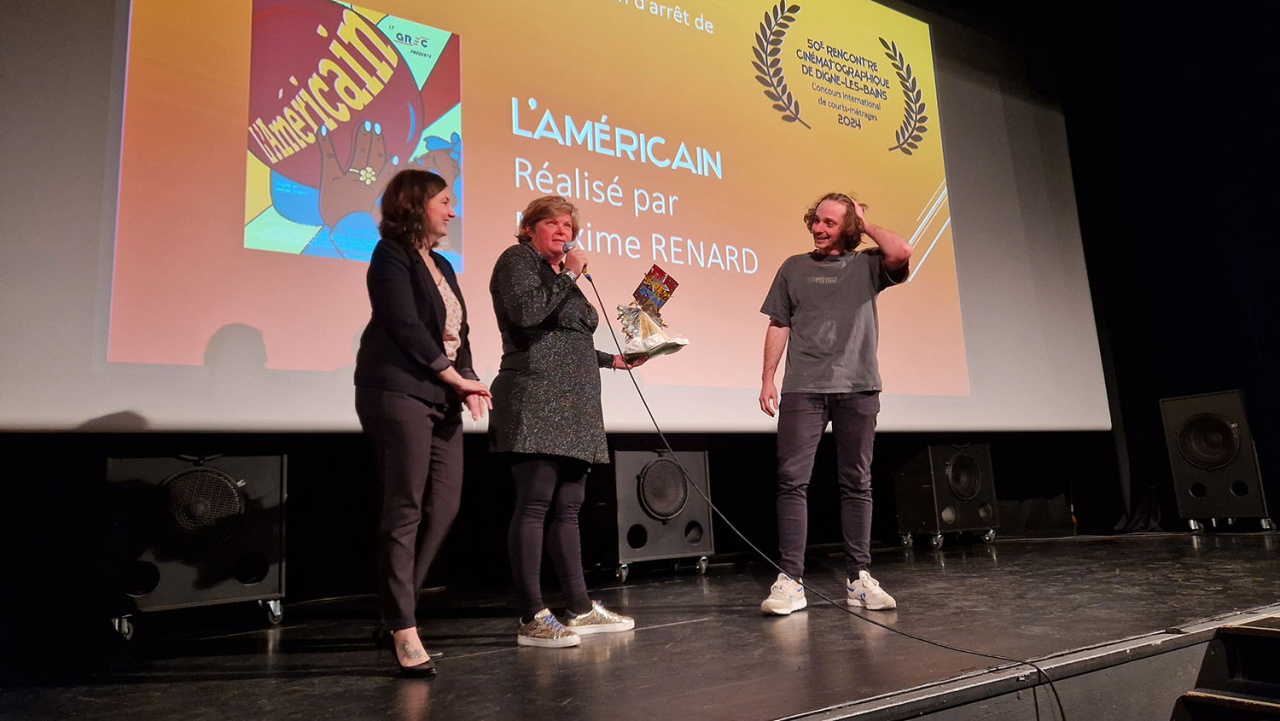2 prix ont été décernés pour le 1er court-métrage de Maxime Renard "L'Américain" lors du Concours de Courts-métrages organisé par les Rencontres cinématographiques de Digne les Bains le 26 mars 2024 au Centre culturel René Char.