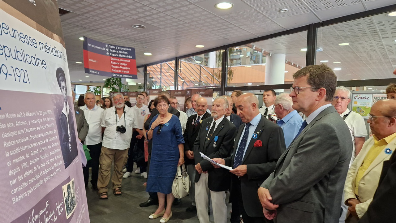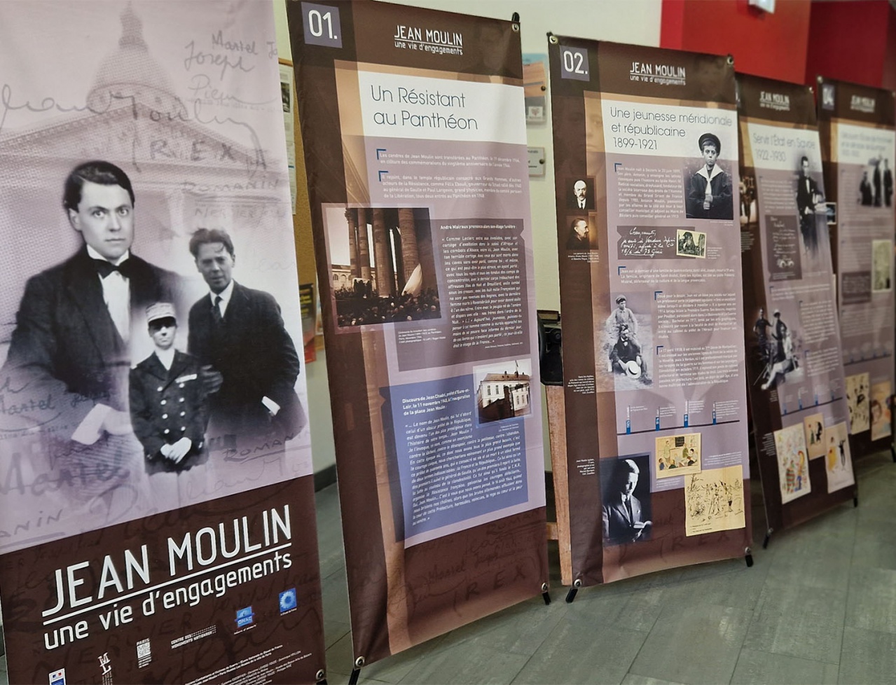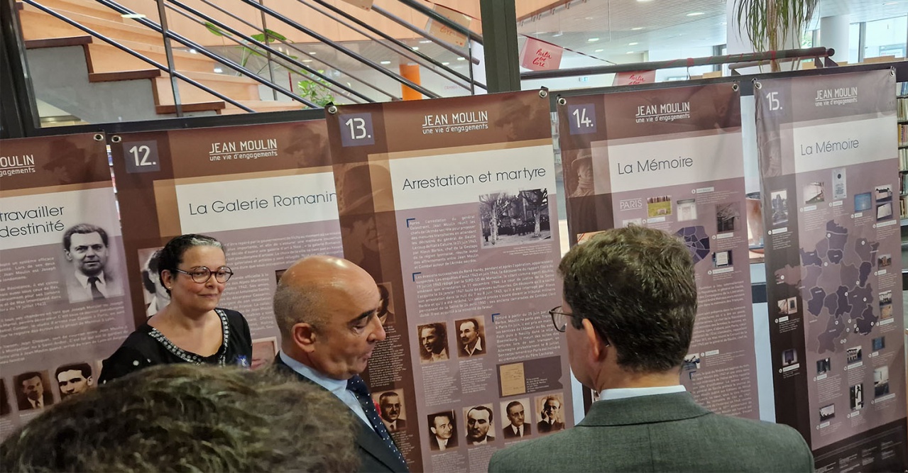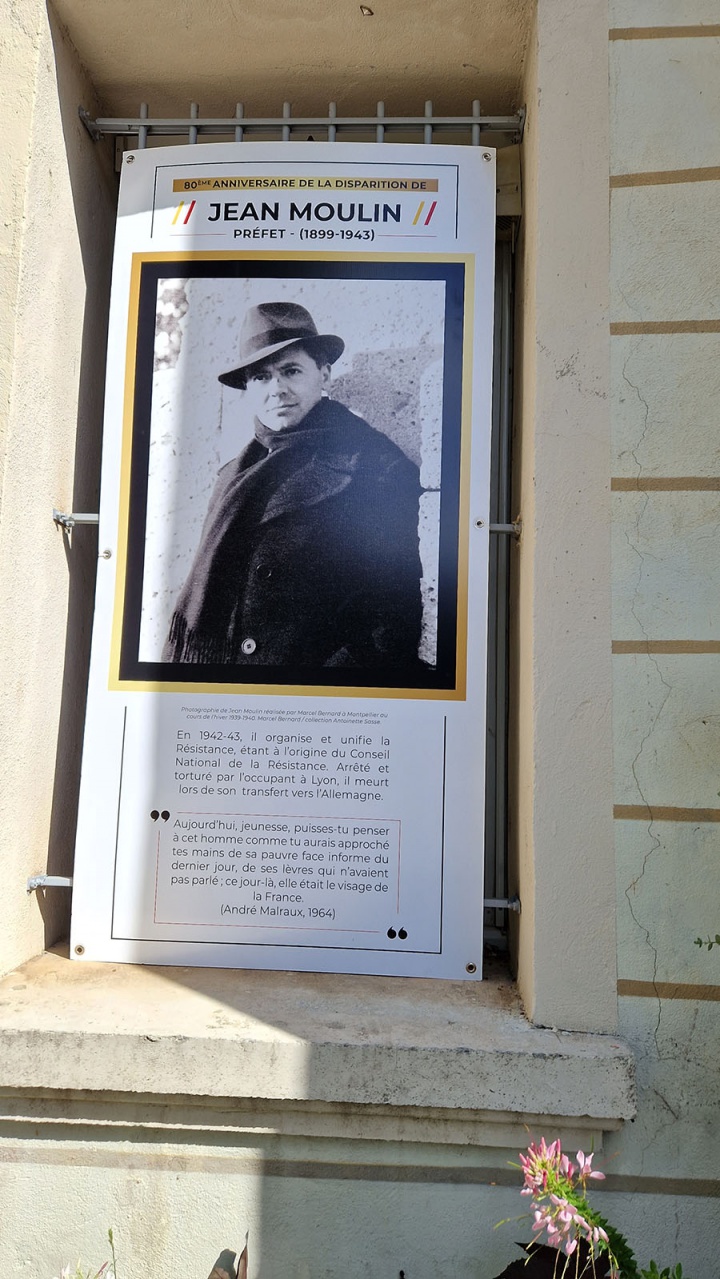 A Digne les bains, pour les 80 ans de la mort de Jean Moulin, a eu lieu une cérémonie de commémoration avec dépôt de gerbes sur la place Jean Moulin, avenue Martin Bret. Puis le vernissage de l'exposition de l'ONaCVG (Office National des Anciens Combattants Victimes de guerre) "Jean Moulin, une vie d'engagements" à la Médiathèque François Mitterrand, exposition commentée par Hervé Gourio Délégué départemental de l'ASAF (Association de Soutien à L'Armée Française) et enfin une conférence "Jean Moulin, le rebelle et le résistant (25 octobre 1941- 21 juin 1943) animée par Jean-Christophe Labadie Directeur des Archives Départementales des Alpes de haute Provence. Parmi le public venu nombreux, des jeunes du Service National Universel, vous entendrez l'un d'entre eux, Léo 15 ans, puis Margaret Missimilly Directrice Départementale de l'Office Nationale des Anciens Combattants et Victimes de guerre, et enfin le Préfet des Alpes de haute Provence Marc Chappuis.