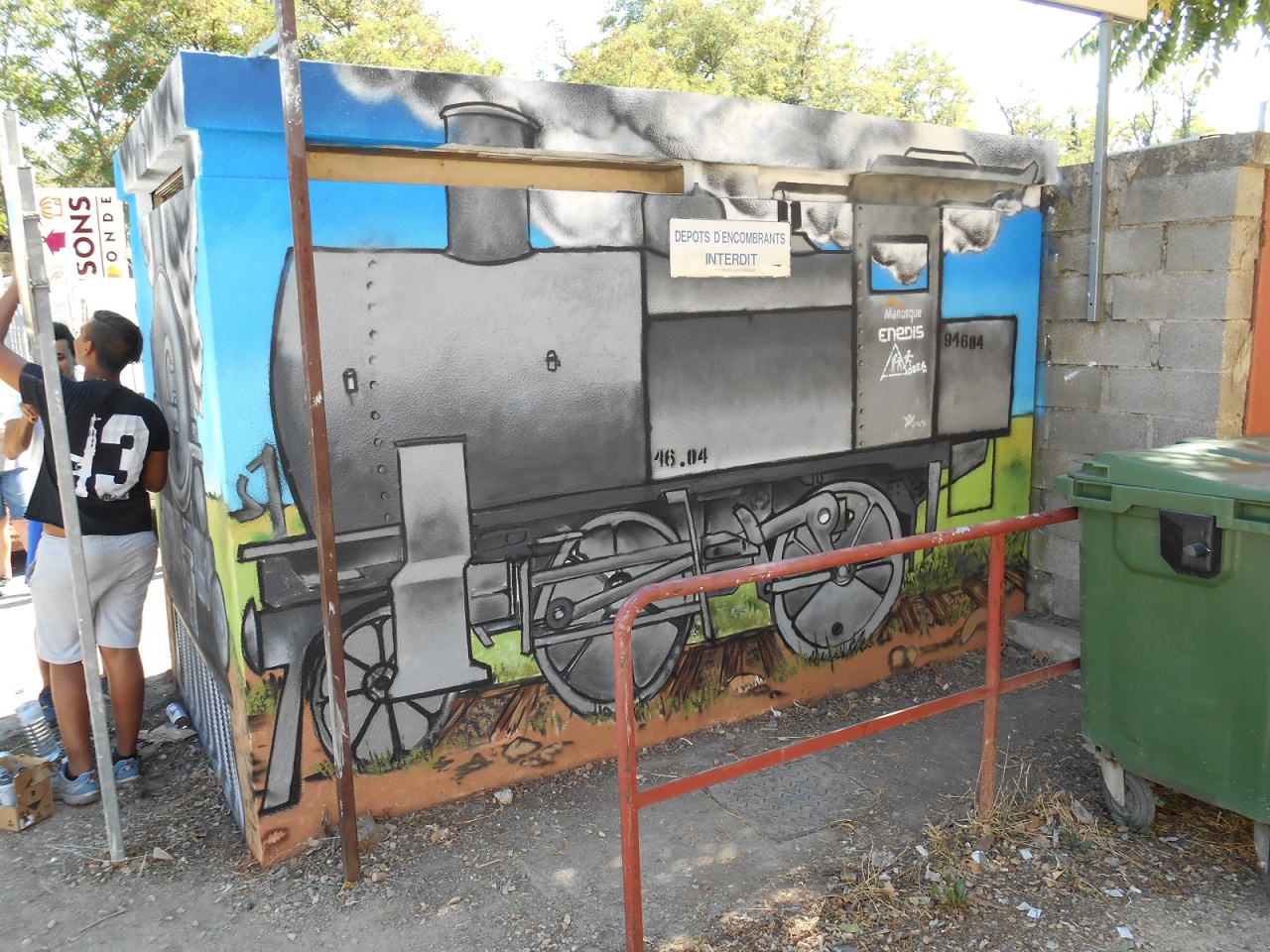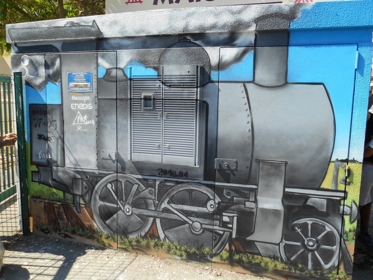 Le service de prévention spécialisée de l’ADSEA 04 a mené de main de maitre ce projet incluant plusieurs partenaires dans le cadre du Contrat de Ville de Manosque. L’embellissement des transformateurs d’ENEDIS a été possible avec la complicité amicale de l’entreprise électrique. Aidés d’associations locales du patrimoine, trois équipes de jeunes ont donc esquissé, dessiné puis bombé – avec des équipements de sécurité et de protection – les murs gris sous la houlette de Julien Marin grafeur professionnel. Et au-delà du chantier de peinture, c’est aussi leur premier contrat de travail, modeste certes, quelques jours, mais réel. Ils ont aussi appris à écouter les consignes d’un pro et à travailler en équipe. L’ADSEA est rompue à ce type d’actions et ces chantiers éducatifs ambitionnent d’inscrire les jeunes dans une démarche de citoyens actifs. Une locomotive, des oliviers, le Mont d’Or ou la Porte Saunerie s’affichent agréablement sur ces équipements urbains indispensables les rendant bien plus sympathiques et agréables à l’œil.