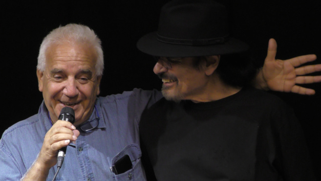 Jacques Bec Président de l'association organisatrice du Festival Poésie et chansons au pays des Lavandes, Les poètes des Hautes Terres au micro d'Odile Frison. C'était juste après le dernier concert du Festival qui a enchanté le public valensolais mais aussi de Digne, Manosque etc.