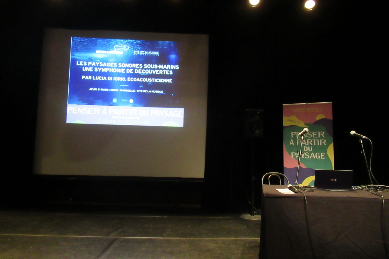 Lucia Di Ioro, bio-acousticienne, a animé une conférence dont le titre est "Les paysages sonores sous-marins, une symphonie de découvertes". D'une sortie en mer jusqu'à l'évènement du soir à la Cité de la Musique à Marseille, cette chercheuse a pu raconter son métier et susciter la curiosité sur ce qui passe dans la Mer Méditerranée. Ce moment d'échange et d'écoute des sons de la mer a été organisé par l'association Opera Mundi qui nous invite à penser à partir du paysage.
