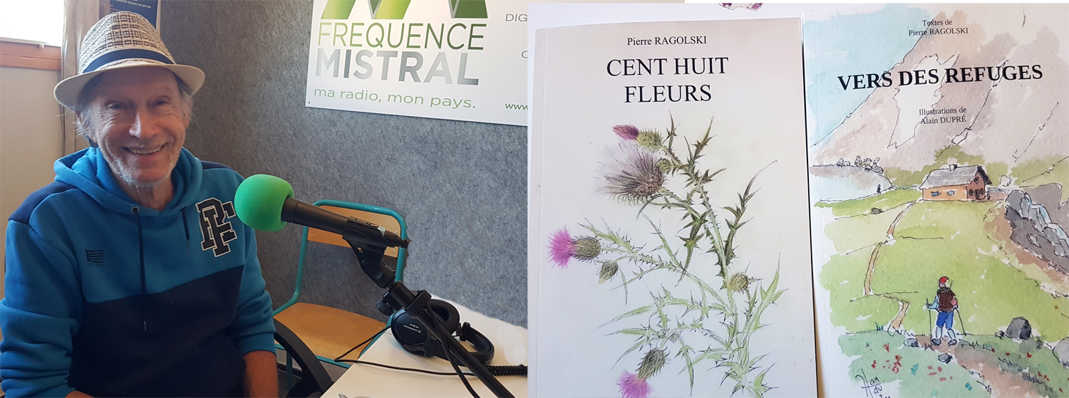 Invité dans le studio de Fréquence Mistral Digne, Pierre Ragolski présente au micro d'Odile Frison "Cent huit fleurs" et "Vers des refuges". Ecoutez-le et courez à la librairie La Ruelle ou La Maison de la presse pour vous les procurer.