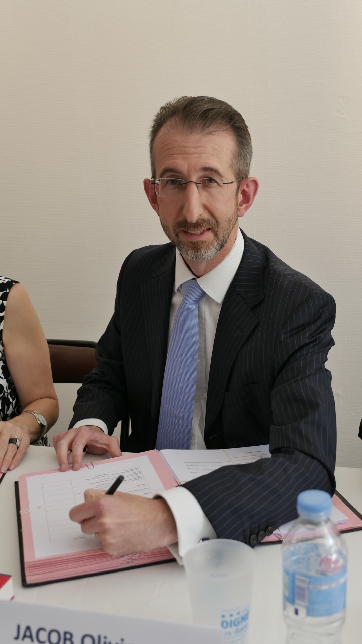 L'engagement collectif est fort pour que la ville de Digne retrouve un parfum d'antan et les différents aménagements souhaités grâce à l'aide de l'Etat et des collectivités sont ambitieux. Refonte du plan de circulation, concertation pour les parkings et places de stationnement, aide aux logements, coup de pouce aux commerçants du centre ville et bien sûr cette fameuse route nationale 85 qui fait si souvent débats sont parties intégrantes de cette convention « Action cœur de ville ». A noter, assistant aux signatures, la venue de Takenori Noda maire de Kamaishi Ville jumelle de Digne-les-Bains et de la délégation japonaise venus pour renforcer les liens entre les 2 villes. Takaishi qui sera ville hôte lors de la prochaine coupe du Monde de Rugby 2019 au Japon tout comme la France accueillera l'édition 2023. Olivier Jacob puis Patricia Granet évoquent cette convention avec optimisme au micro de Jean-Marc Léca.