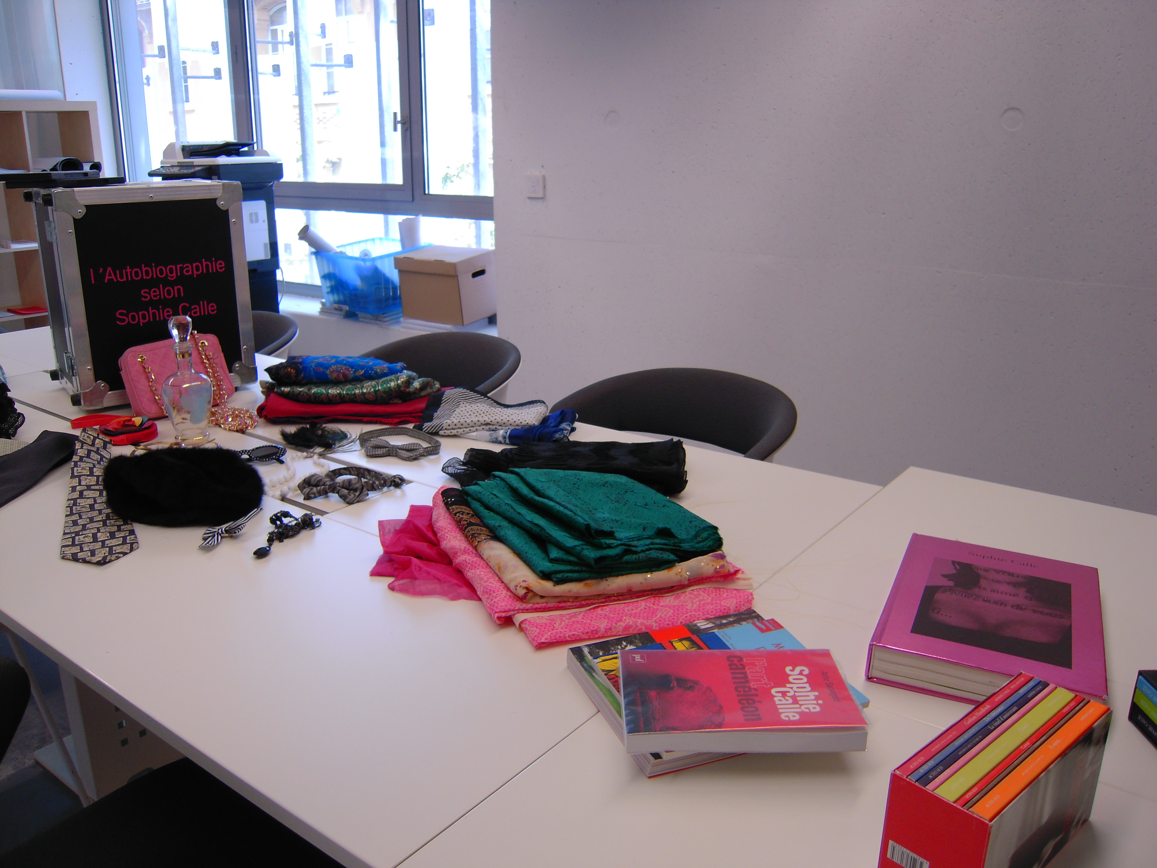 Une discussion entre les participants se construit en réaction au travail de Sophie Calle, complétée par des ateliers de pratique d'écriture et de manipulation plastique pour comprendre la relation entre le texte et l'image dans le travail autobiographique. L'idée est de mettre à contribution l'expérience personnelle des participants, mais en l'utilisant à la manière de Sophie Calle, en créant un filtre oscillant entre autobiographie et autofiction.