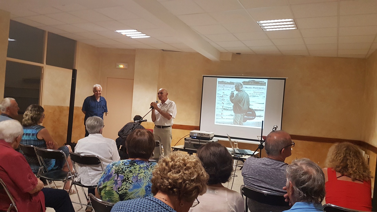 Pour cette inauguration, le maire de Saint Martin de Brômes, Jean-Christophe Pétrigny, conseiller départemental du canton de Valensole, et 1er vice-président de la DLVA, ainsi que Nathalie Ponce-Gassier 1ère vice-présidente du Département des Alpes de haute Provence et Conseillère départementale du canton de Valensole. Le Festival Poésie et chansons au Pays des Lavandes est organisé par l’association Les Poètes des Hautes Terres, et a pour ambition de rapprocher les férus d’une poésie française traditionnelle et populaire et les amoureux de la Haute-Provence. 11 communes accueilleront les artistes de la programmation de cette 6ème édition. Moment d’inauguration autour d’un apéritif en chansons par l’équipe et les artistes permanents du Festival (Jean-Pierre Laurent, Jean-Sébastien Bressy, Erwens, et Jean-Marc Dermesropian). Puis le public a pu assister à une conférence sur Georges Brassens par Michel Trihoreau, conférence suivie d’un concert des chansons de Brassens magnifiquement interprétées par Michel Grange. Un public chaleureux et une très belle soirée qui donne le ton sur la qualité du programme de cette nouvelle édition. A suivre…. Reportage Odile Frison. Jean-Christophe Pétrigny