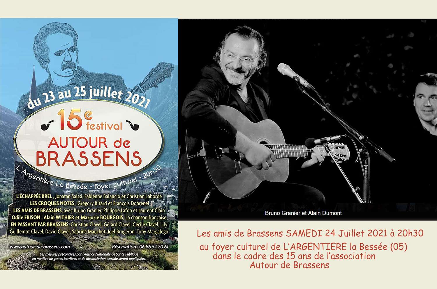 Le programme du Festival de l'Argentière la Bessée "Autour de Brassens" du vendredi 23 juillet au dimanche 25 juillet 2021 ci-dessous