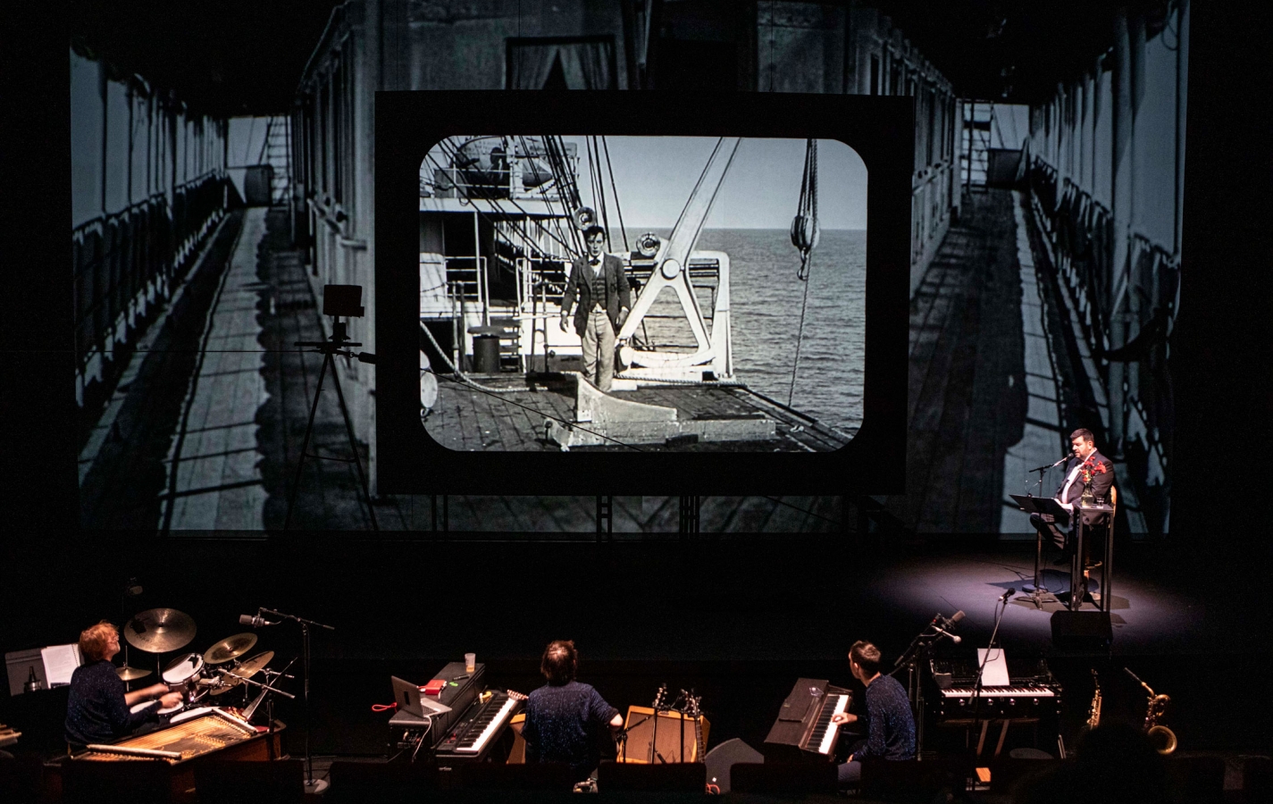 Dans ce ciné-concert insolite, le metteur en scène et musicien Mathieu Bauer s’entoure de Sylvain Cartigny à la guitare et à l’harmonium et de Lawrence Williams au saxophone et au chant pour créer une bande originale qui retrace et accompagne La croisière du Navigator de Buster Keaton. Se laissant inspirer par le film, les musiciens nous livrent une interprétation musicale originale des aventures de Patsy O’Brien et Rollo Treadway, deux aristocrates milliardaires qui tentent de survivre à bord d’un paquebot à la dérive. Arpentant l’espace entre la scène et la salle, le fildefériste Arthur Sidoroff incarne, quant à lui, la figure de l’acrobate et nous transporte au-delà de l’écran. En parallèle, Stéphane Goudet, conférencier et expert du cinéma burlesque, nous plonge avec humour dans les rouages du cinéma américain de cette époque et éclaire l’œuvre de Buster Keaton. Ce rendez-vous ouvre des fenêtres inattendues sur l’oeuvre d’un cinéaste aussi populaire que génial. Une création hybride et débridée.