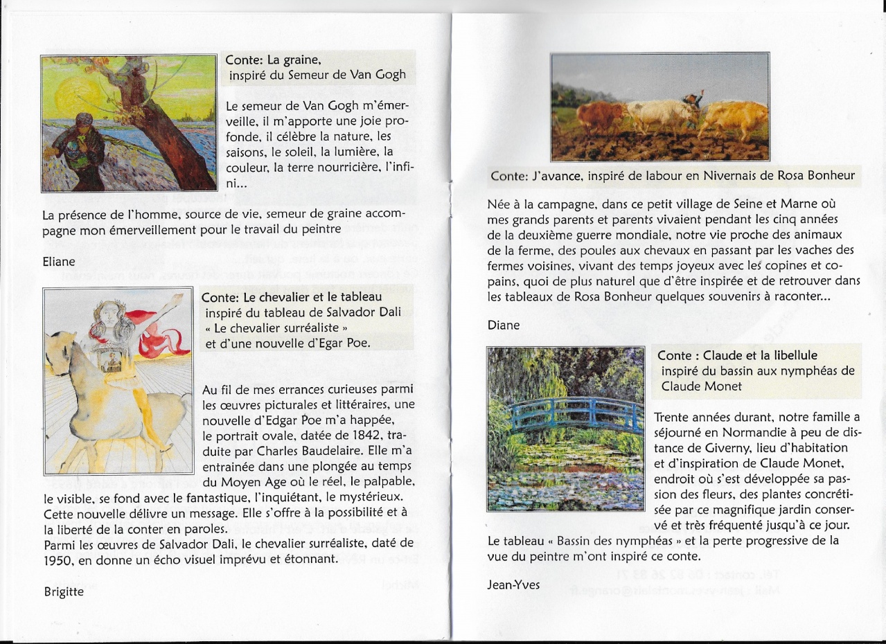 Dans cet épisode, vous entendrez des contes écrits par les membres de l'association pour leur dernier spectacle : Contes et Musique. Des histoires inspirées de tableaux, de l'impressionisme à nos jours. Aujourd'hui, ce sont les voix d'Eliane, Jean-Yves, Michel et Pauline.