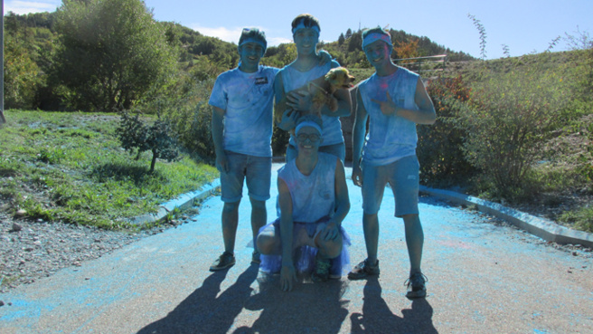 Enthousiasme et énergie, deux noms pour qualifier la course des lycéens dignois du lycée Pierre Gilles de Gennes qui ont couru du Palais des Congrès au plan d’eau des Ferréols, pour soutenir la Ligue dans ses recherches contre le cancer. Plus de 500 participants se sont inscrits à cette journée sportive suivie d’un concert gratuit organisé au plan d’eau avec 3 groupes de la région. Notre collègue Odile Frison a rencontré aux alentours du plan d’eau de Digne 4 lycéens, recouverts de poudre bleue des pieds à la tête, couleur de la lutte contre le cancer. Je vous propose de les écouter, puis vous entendrez le témoignage de la maîtresse du chien poudré de jaune, mascotte de la ligue contre le cancer. Reportage Odile Frison.