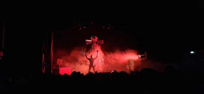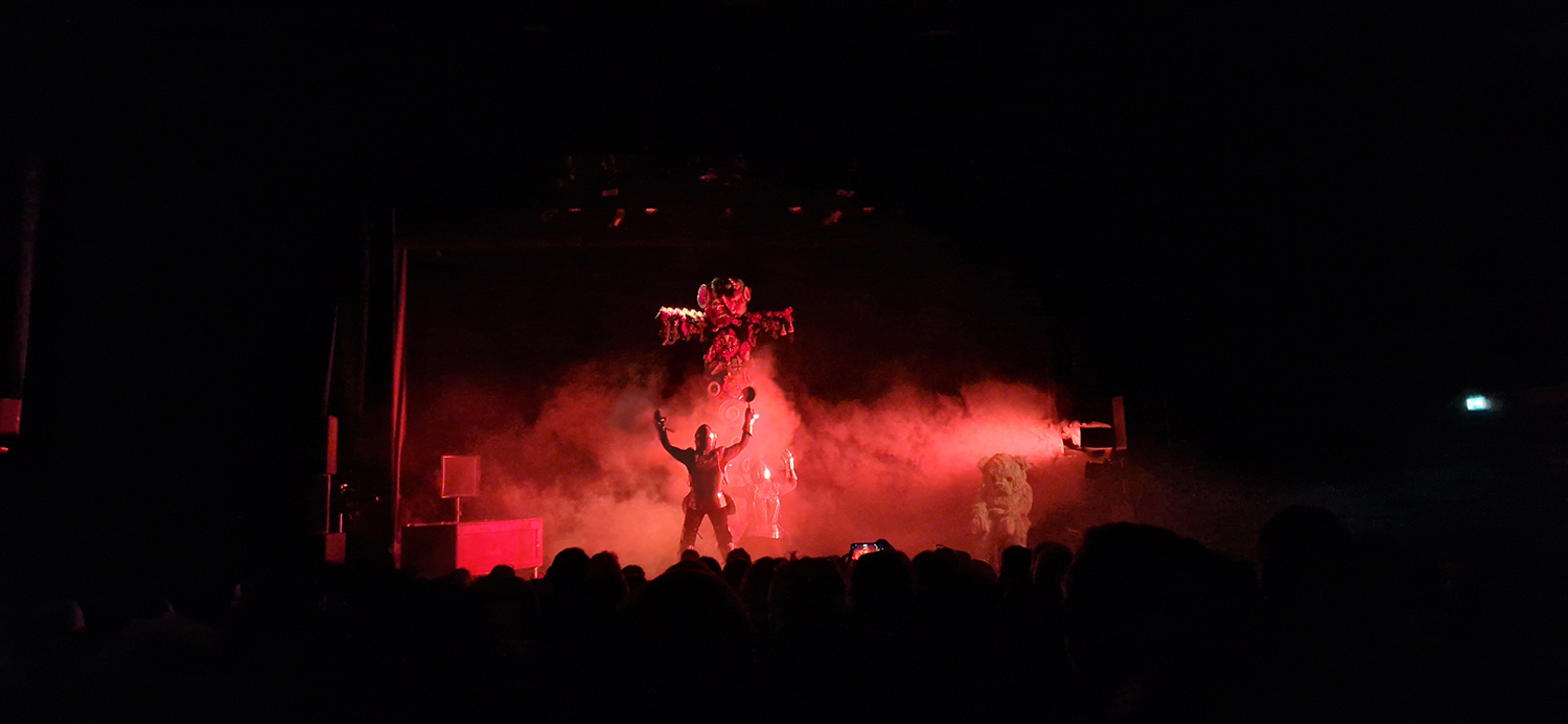 Un bord de scène à l'issue de la représentation a permis à un groupe de jeunes filles du Lycée Alexandra David Néel de poser des questions pertinentes aux comédiens sur la mise en scène, le jeu, ou même le montage son. Invitées à venir découvrir le décor de plus près, notamment le fabuleux totem.
