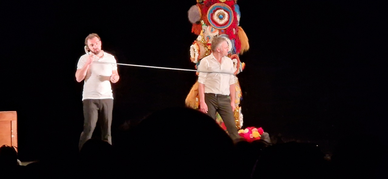 Un questionnement sur la famille, où chacun se retrouve. Une mise en scène rythmée, originale, surprenante, des scènes qui nous plongent au coeur de l'enfance, de l'humour, des rires, des bagarres mais aussi des moments plus profonds, plus graves. Du rire aux larmes, Antoine Meunier et Sébastian Lazennec ont su emmener le public dans cette traversée familiale avec brio. Au micro d'Odile Frison, le témoignage tout d'abord d'une lycéenne, puis celui de Lydia, et enfin l'un des auteurs, acteurs, Sébastien Lazennec .