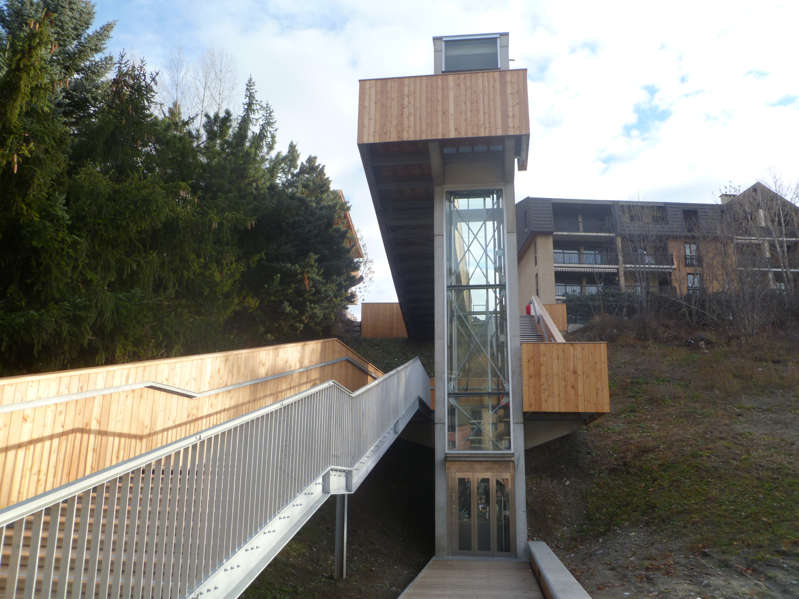Le projet « Cœur de ville » est un vaste programme de rénovation urbaine dans le but de revitaliser l'économie et de donner un aspect plus moderne et plus attractif à la ville de Briançon. Parmi ces projets, c'est la liaison centre ville pied de station du Prorel qui a été inaugurée vendredi dernier, par le Maire Gérard Fromm en présence du Préfet des Hautes-Alpes Pierre Besnard et de la sous-préfète de Briançon Isabelle Sendrané ainsi que de la vice-présidente du Conseil général Monique Estachy. Ces nouveaux aménagements sont composés d'une passerelle de 20 mètres et un ascenseur en verre ainsi que le pied de station qui a été réaménagé avec une première phase de travaux. Le tout dans un alliage bois et métal particulièrement réussi et un revêtement de belle couleur. Aurélie Poyau, adjointe à l'urbanisme de la Ville de Briançon détaille cette réalisation au micro de Philippe Bonsol.
