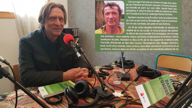 Norbert Jouveau a retenu son attention, puisqu'il s'est lui-même installé dans la vallée du Jabron en 1994, pour tenir tout d'abord un bistrot-restaurant à Noyer sur Jabron avec l'envie déjà d'intégrer la culture en milieu rural. Puis il a créé la ferme auberge "Danse l'Ombre" (repas bio avec les légumes cultivés sur place, cochons élevés à la ferme etc.). Un lieu convivial, et chaleureux, où l'on pouvait assister à des soirées spectacles et concerts mémorables. Je vous propose d'écouter au micro d'Odile Frison, Denis Carvin auteur de