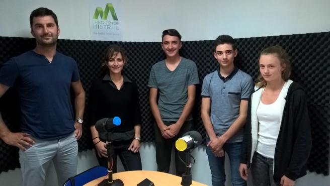 Christelle Wolff, professeur de physique, Victorien Marchal, instructeur à l’aéroclub de Vinon et Camille, Fabio et Nathan, élèves de 3° au collège Jean Giono.