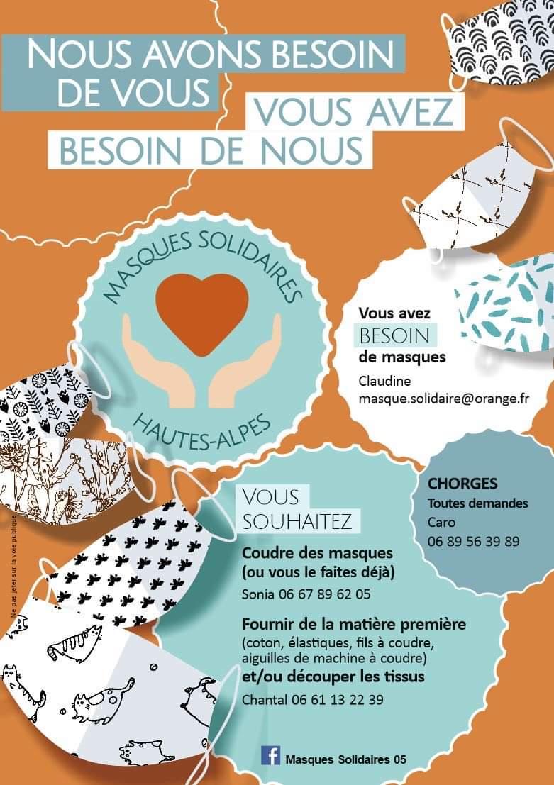 Crée par Sandra, restauratrice à Embrun , le collectif "masques solidaires 05 " prend une ampleur impressionnante et si nécessaire.