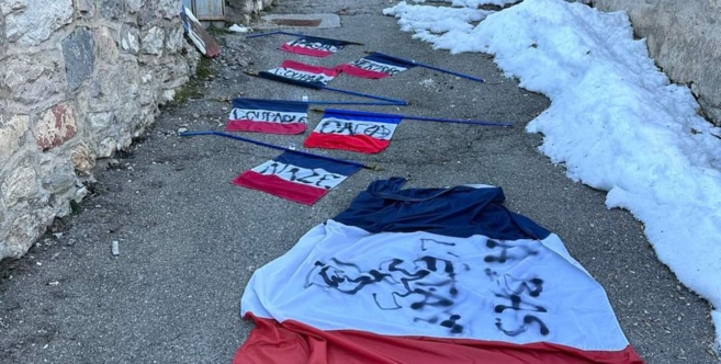 Dans la nuit de jeudi à vendredi, Sept drapeaux ont été déposés à terre dans une allée qui jouxte le cimetière, à côté du monument aux morts de Briançon. Aucune tombe n’a été cependant profanée. Les inscriptions "meurtrier", "coupable", "naze", "facho", "abat l’État" ou "caca" - avec le A d’anarchiste - ont été inscrites sur les drapeaux tricolores qui ont été arrachés du Monument aux morts qui se trouve à proximité des tombes.