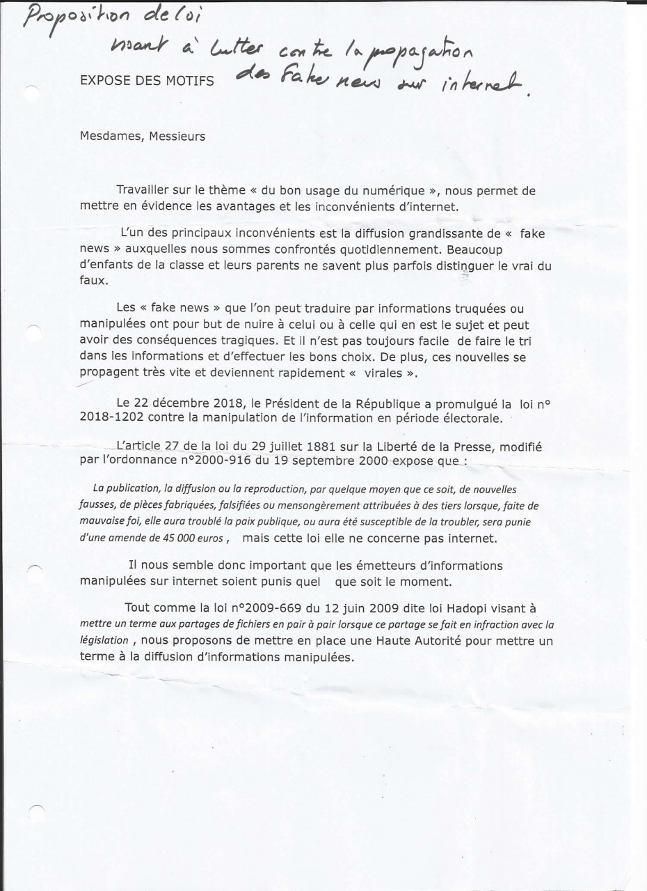 Des écoliers sisteronnais proposent une loi contre les fake news