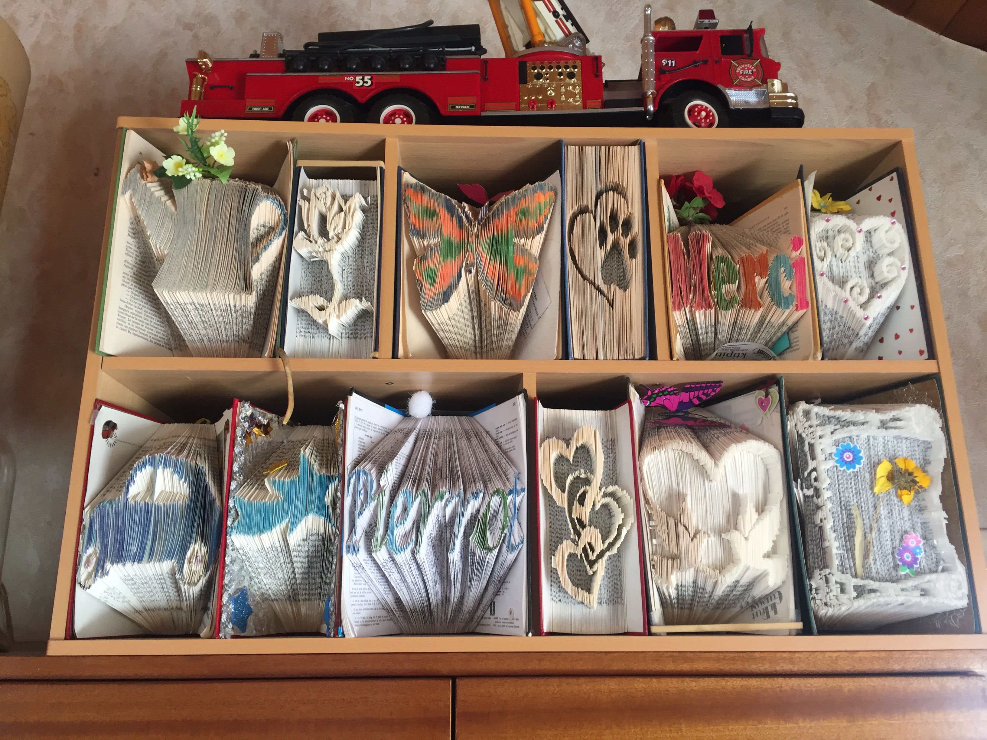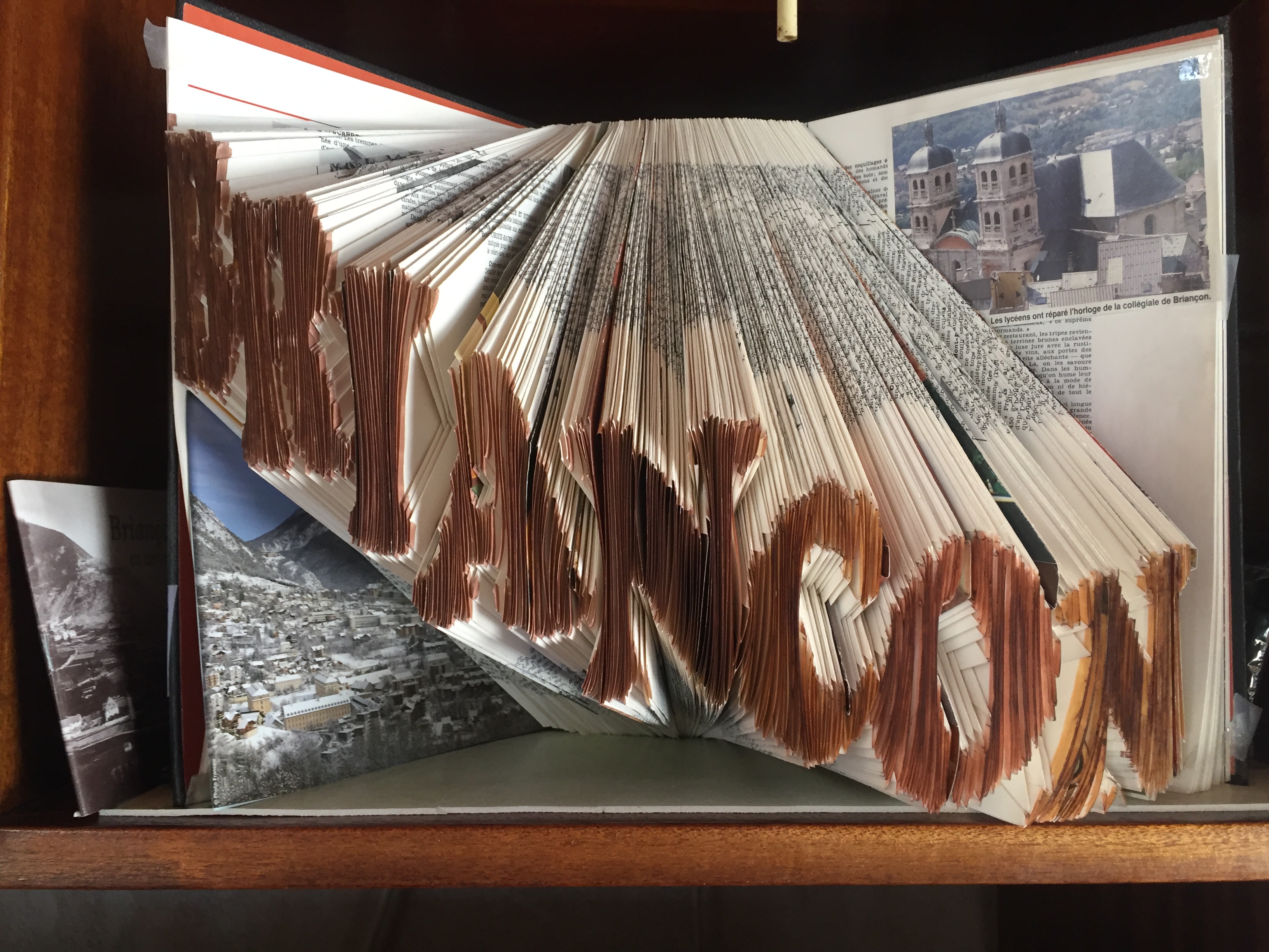 Le « Cut and Fold », littéralement coupé, plié nous est arrivée des pays anglo-saxons. Il s’agit de découper la tranche des livres pour en faire des objets décoratifs. Cela requiert une finition et un talent absolus ainsi bien sûr qu’une grande patience !