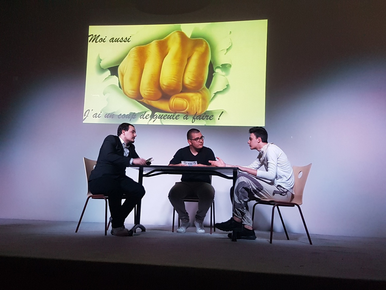 « Pourquoi pas nous ?» a été donnée la semaine dernière par une vingtaine d’élèves du lycée dignois Pierre-Gilles-De-Gennes. Une conception et une prestation réalisées sur une initiative d’Aurélie Garcia-Daumas enseignante en communication et technique commerciale et en collaboration avec Fanny Fux professeur de culture générale en BTS et Agnès Chaoul Professeur documentaliste. Toutes 3 se sont unies pour monter un projet d’écriture, de recherche, et de mise en scène pour ce spectacle. Une captation vidéo permettra aux lycéens de garder une trace de ce travail d’écriture, et de mise en scène ainsi que la mise en ligne d’extraits sur le site du lycée. Tous les acteurs, comme les initiatrices de « Pourquoi pas nous ? » étaient fiers du résultat. Cette belle aventure s'est achevée autour d'un verre bien mérité. Aurélie Garcia-Daumas, Fanny Fux et Agnès Chaoul répondent aux questions d’Odile Frison.