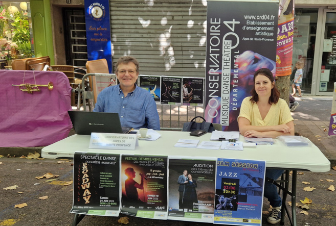 Benoit Paillard Directeur du Conservatoire à rayonnement départemental à Digne les bains, au micro d'Odile Frison. De nombreuses disciplines restent encore possible pour les inscriptions 2023-2024 telles que le clavecin, la flûte à bec, la guitare, le violon, la contrebasse...