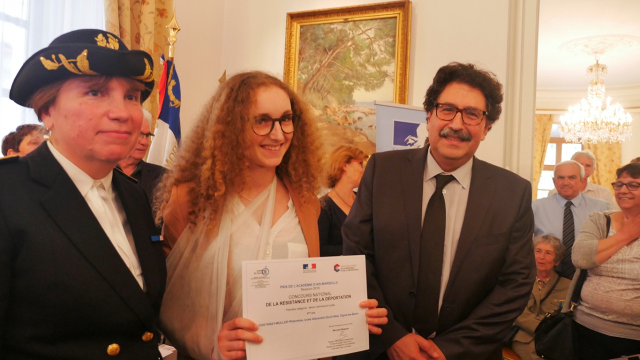 Les prix attribués par le jury départemental : Travaux individuels Lycée : 1er prix ex-aequo Amélia GONZALVES (Lycée A. David Neel, Digne-les-Bains) et Alma BADET (Lycée A. David Neel, Digne-les-Bains), 2e prix Marie WAECKERLE (Lycée Paul Arène, Sisteron), 3e prix Philomène CHATANAY-MULLER (Lycée A. David Neel, Digne-les-Bains). Travaux individuels Collège : 1er prix Lina CHALABI (Collège Mont-d’Or, Manosque), 2e prix Pauline LE BRETON (Collège Camille Reymond, Château-Arnoux) 3e prix ex-aequo Mathis HANUS (Collège Mont-d’Or, Manosque), Guillaume BULGALSKI (Collège René Cassin, Saint-André les Alpes).