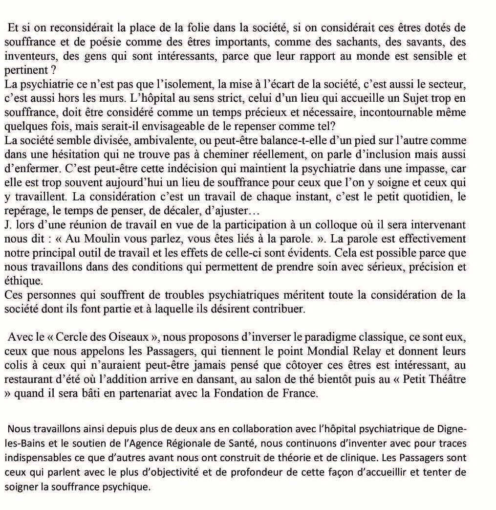 Le dimanche 12 juin, au cercle des Oiseaux à Riez dans les Alpes de haute provence, sera un jour de fête en 3 parties. Le matin : rencontres et débats autour du thème de la "considération en psychiatrie". L'après midi : Plumetis, 12 Représentations courtes théâtre/danses/musique/chansons/photographie/installations... et en soirée, concert avec O'MakaÏ.