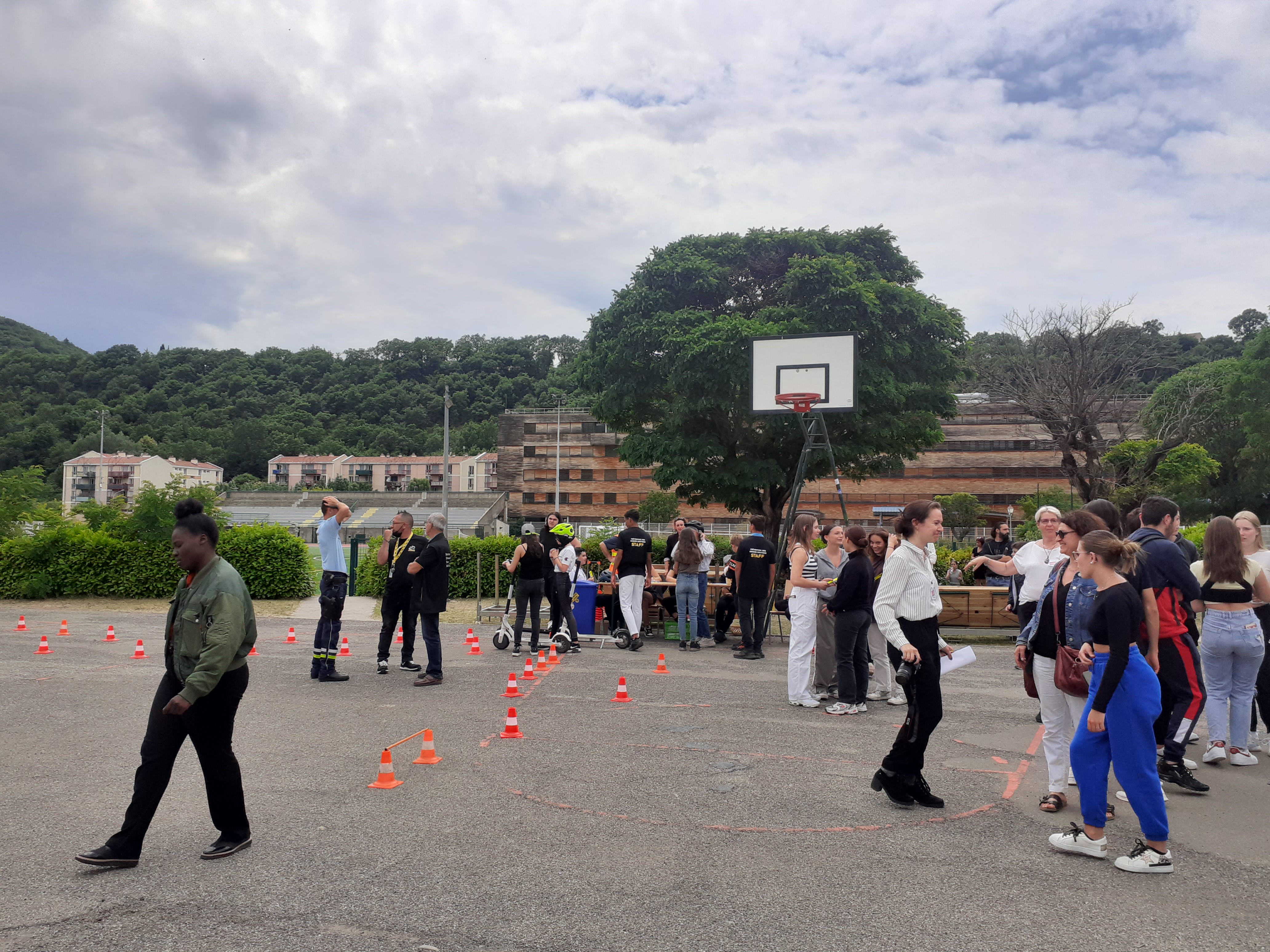 Dernièrement au cœur de la cité Paul Arène s’est déroulée la 1ère journée de prévention à la sécurité routière qui a mobilisé une grande partie du personnel de l'établissement. De nombreux stands et associations avaient pris place sur le grand espace côté gymnase et toute la journée l'accès est resté libre aux élèves en plus de certains créneaux prévus dans l'emploi du temps scolaire. L’ambiance sur les nombreux stands fut très animée avec une réactivité de la part des élèves très appréciée des animateurs et enseignants répartis sur les stands et espaces de rencontres. Au programme : démonstration des pompiers, informations des gendarmes, conseils de la direction interdépartementale de la sécurité routière et de la MGEN (Mutuelle générale de l'Éducation nationale), circuit de trottinettes électriques, simulateur de choc et de conduite... Immersion dans l’ambiance de cette journée, avec au micro de Chriss Alessandri : Laetitia Dujardin professeure, Marie Sanchez élève de l'établissement , le chef Thibault pour la brigade motorisée de Digne et plusieurs étudiants de la citée scolaire Paul Arène en pleine activité.