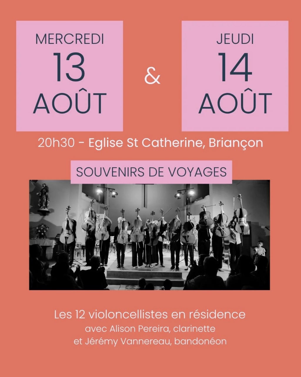 Cette année : 19 concerts, 2 par jour, dont 1 chaque soir à l'Eglise Sainte Catherine à Briançon ; et une semaine de stage avec une centaine d'élèves, et 12 professeurs violoncellistes en résidence.