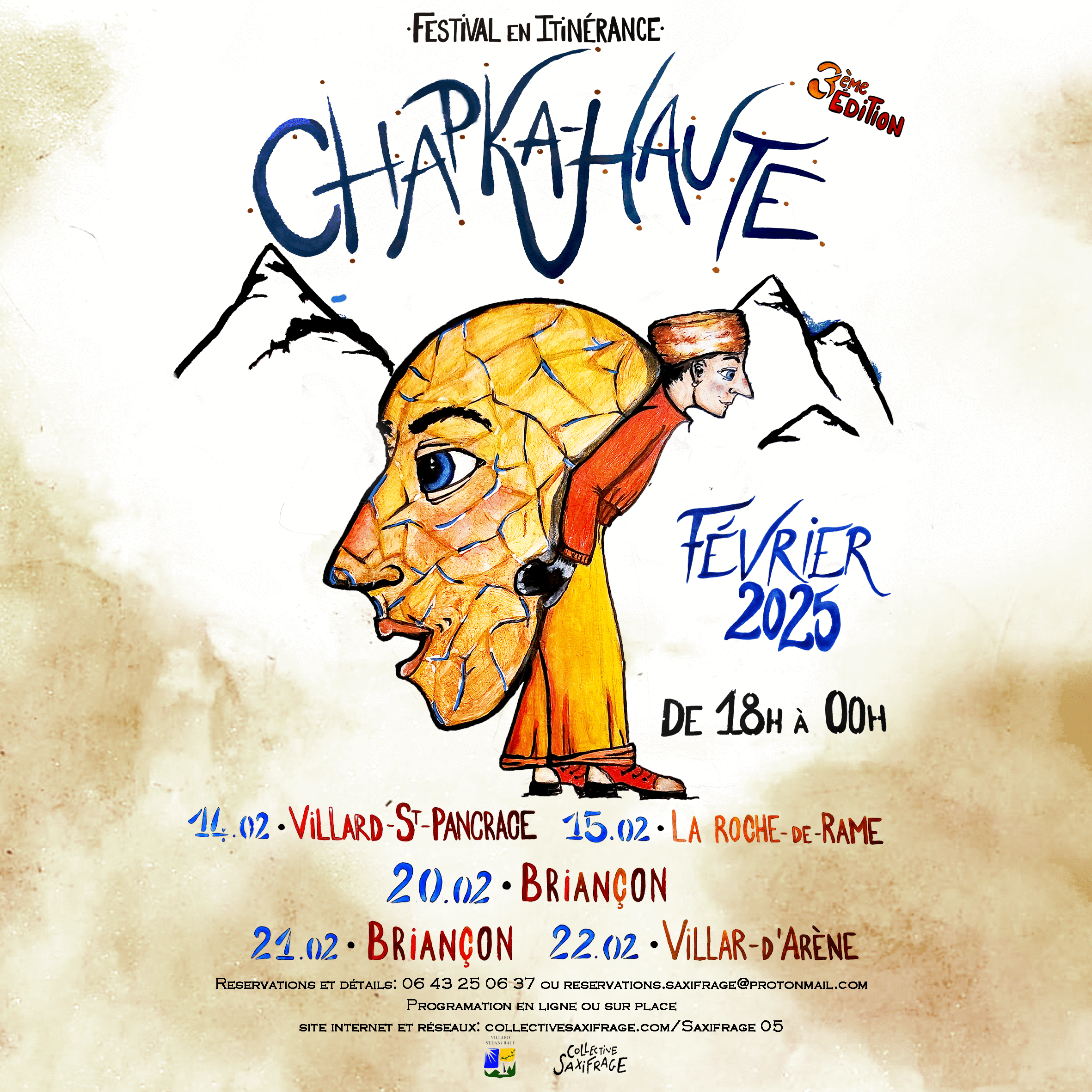 Le festival Chapka Haute revient en ce mois de février 2025. Cet événement est organisé par la collective Saxifrage, qui réunit des artistes des Hautes-Alpes, et d'ailleurs, et qui crée spectacles et festivals, ici, et ailleurs.