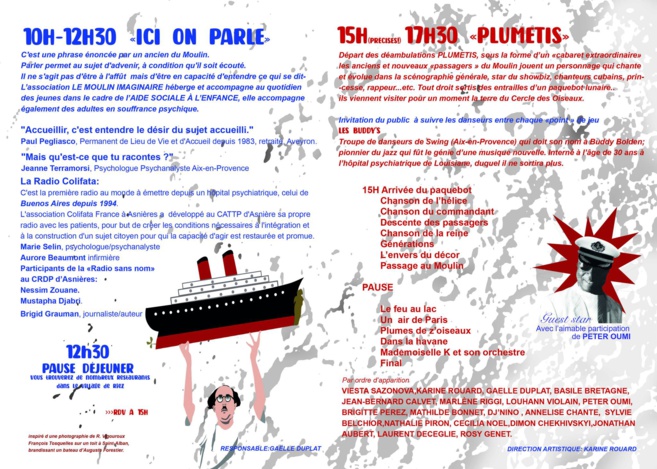 Les passagers du Cercle des oiseaux proposeront à Riez dimanche 30 juin leur cabaret extraordinaire, dans le cadre du festival Plumetis. Le Cercle des oiseaux est une association dont le but est de créer du lien social pour des adultes ayant été hospitalisés longtemps en psychiatrie et des enfants placés par l'aide sociale à l'enfance, les passagers .