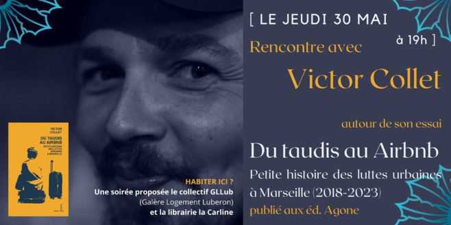 " Le collectif GLLub (Galère Logement Luberon) et la Carline reçoivent Victor Collet pour une soirée d'échanges autour du mal-logement, de la gentrification et des problématiques sociales liées à la multiplication des locations de tourisme.