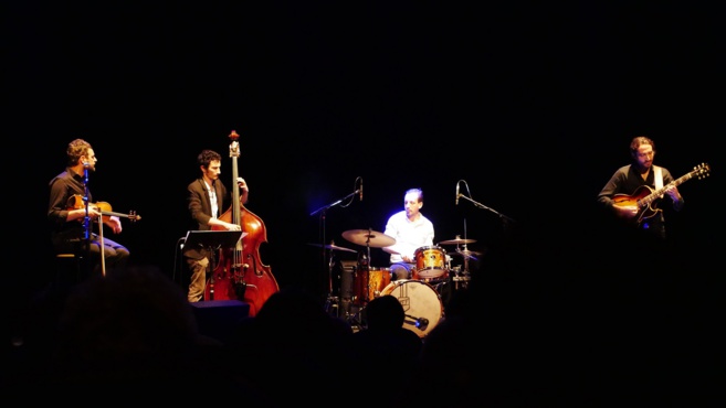La musique de Stéphane Grappelli est intemporelle et l’hommage qui lui est rendu par le Grappelli Project en est un parfait exemple. Dans un Centre Culturel René Char où avait pris place des amoureux du plus célèbre violoniste français, Thomas Kretzchmar digne héritier du maître, Jérémie Schacre à la guitare, Stéphane Zef Richard aux fûts et le contrebassiste Guilhaume Renard ont distillé un répertoire fait de pièces écrites par Stéphane Grappelli et Django Reinhardt mais aussi de standards de jazz connus des mélomanes présents. Bien sûr, le morceau « Nuages » a été le point d’orgue de la soirée mais les pizzicati pour le clin d’œil au film « Les valseuses » de Bertrand Blier ont été dégustés à leur juste valeur. Surtout lorsque Thomas Kretzchmar a livré une anecdote à propos du film et de la réaction de Grappelli quand il a découvert les images mises sur sa musique… Jérémie Schacre lui a été bercé et influencé par Django Reinhardt génie de la 6 cordes et complice indissociable de Grappelli. La soirée a été rythmée par des danses qui allaient de la valse au boléro en passant par des joutes musicales pour ce quartet.