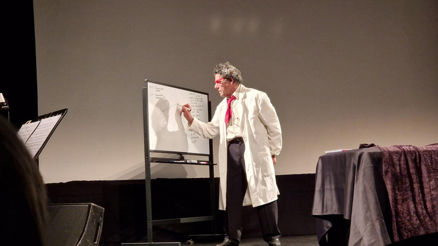 Une performance théâtrale Paléontologique du Comédien Dominique Zamparini en ouverture de la BD concert donnée au Centre culturel René Char à Digne les Bains, autour de la BD "300 millions d'années et un jour"de Bernard Nicolas.