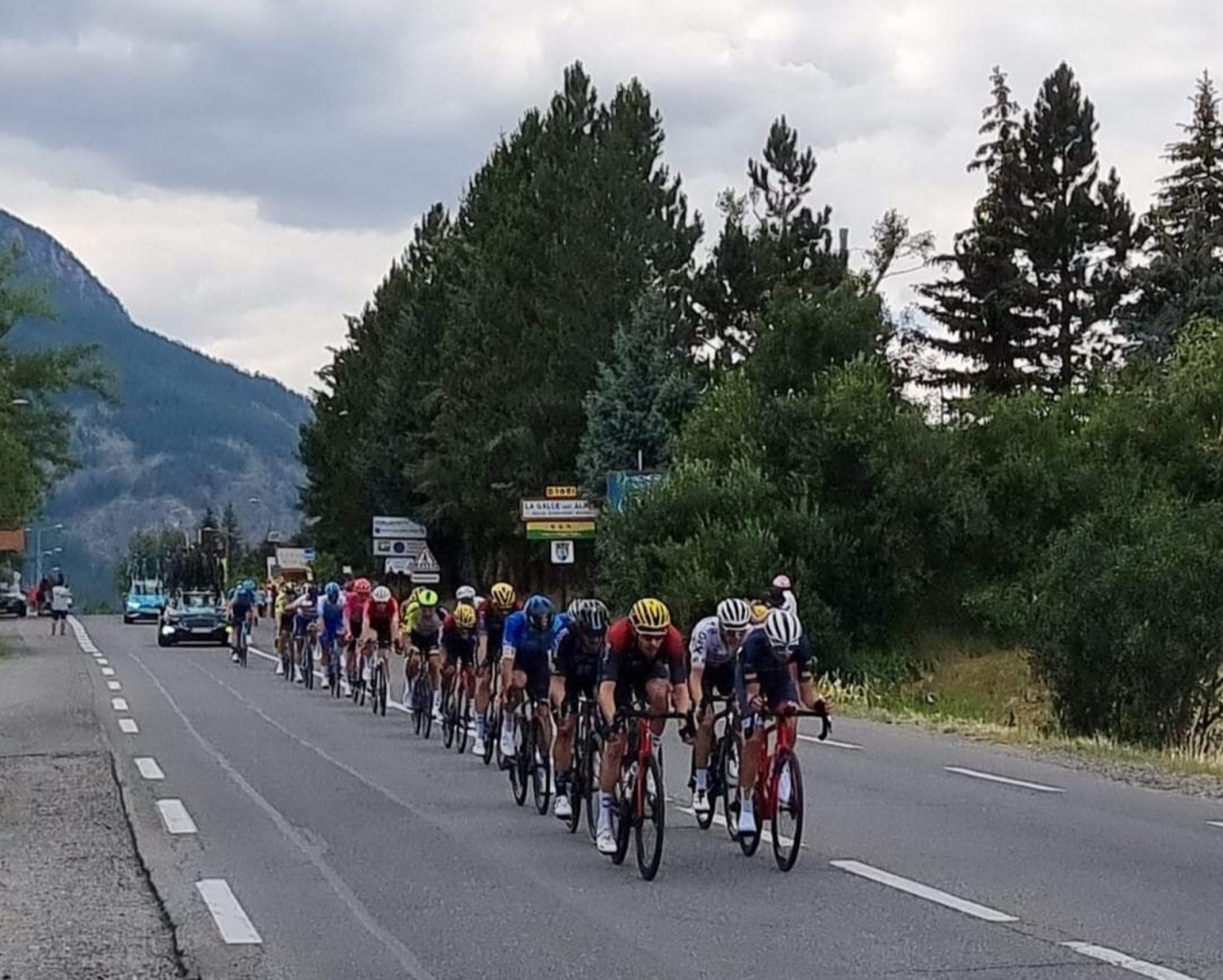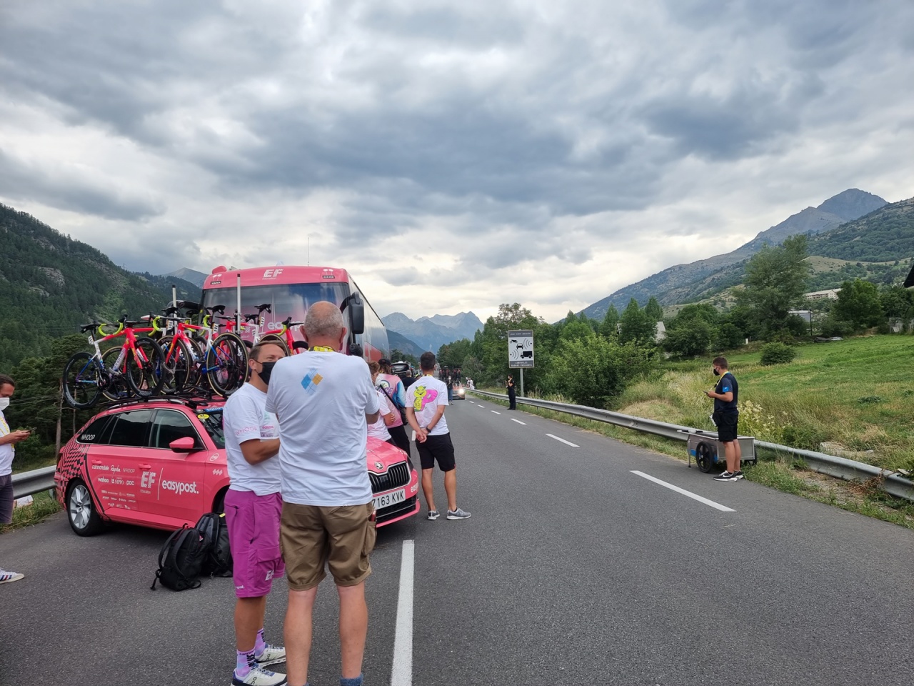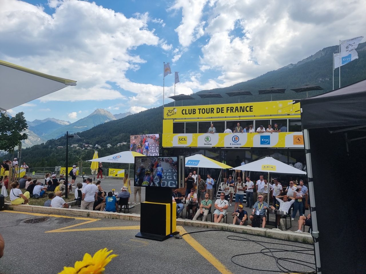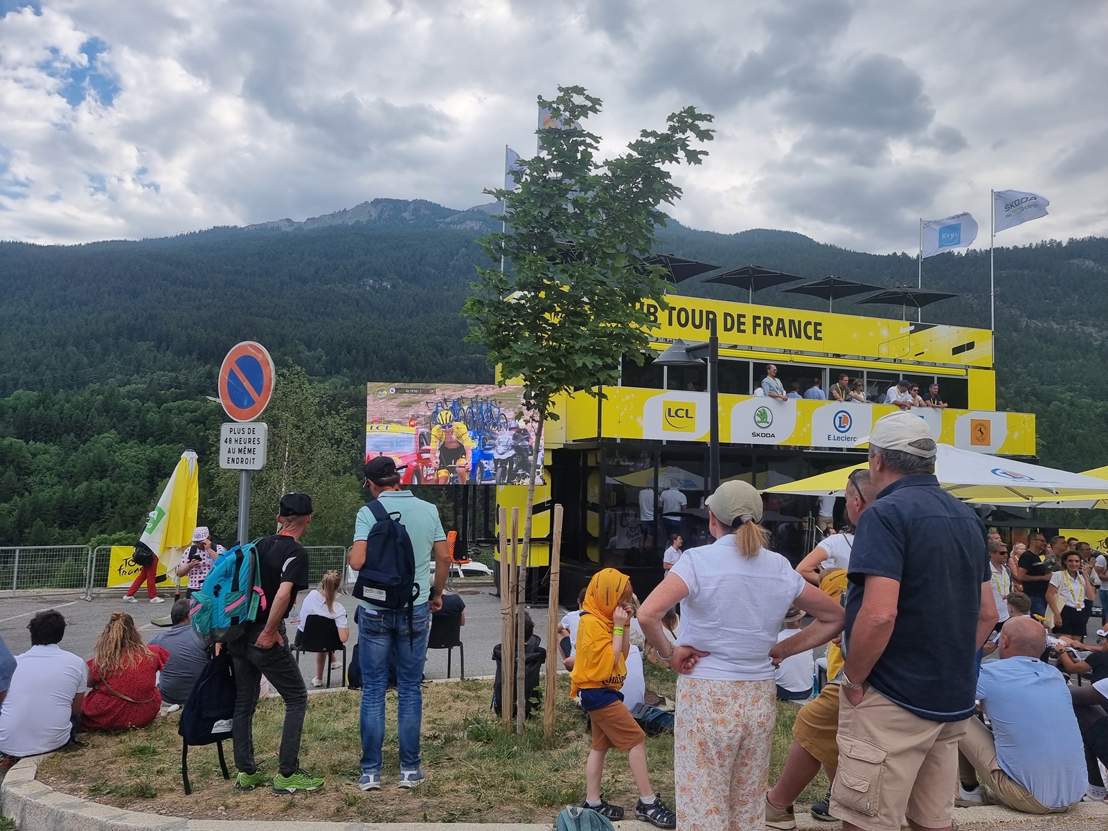 Henri Terreaux, directeur technique événementiel chez orange nous présente l'espace technique au micro de Laura Giraud pour cette 11e étape du Tour de France 2022 (Albertville - Col du Granon), ce mercredi 13 juillet 2022.