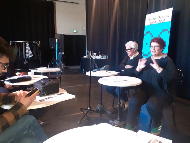 Rencontre avec la directrice du Théâtre Durance : Élodie Presles au micro de Chriss Alessandri, mais tout de suite, Marie Rouge responsable de la communication et des relations avec les publics.