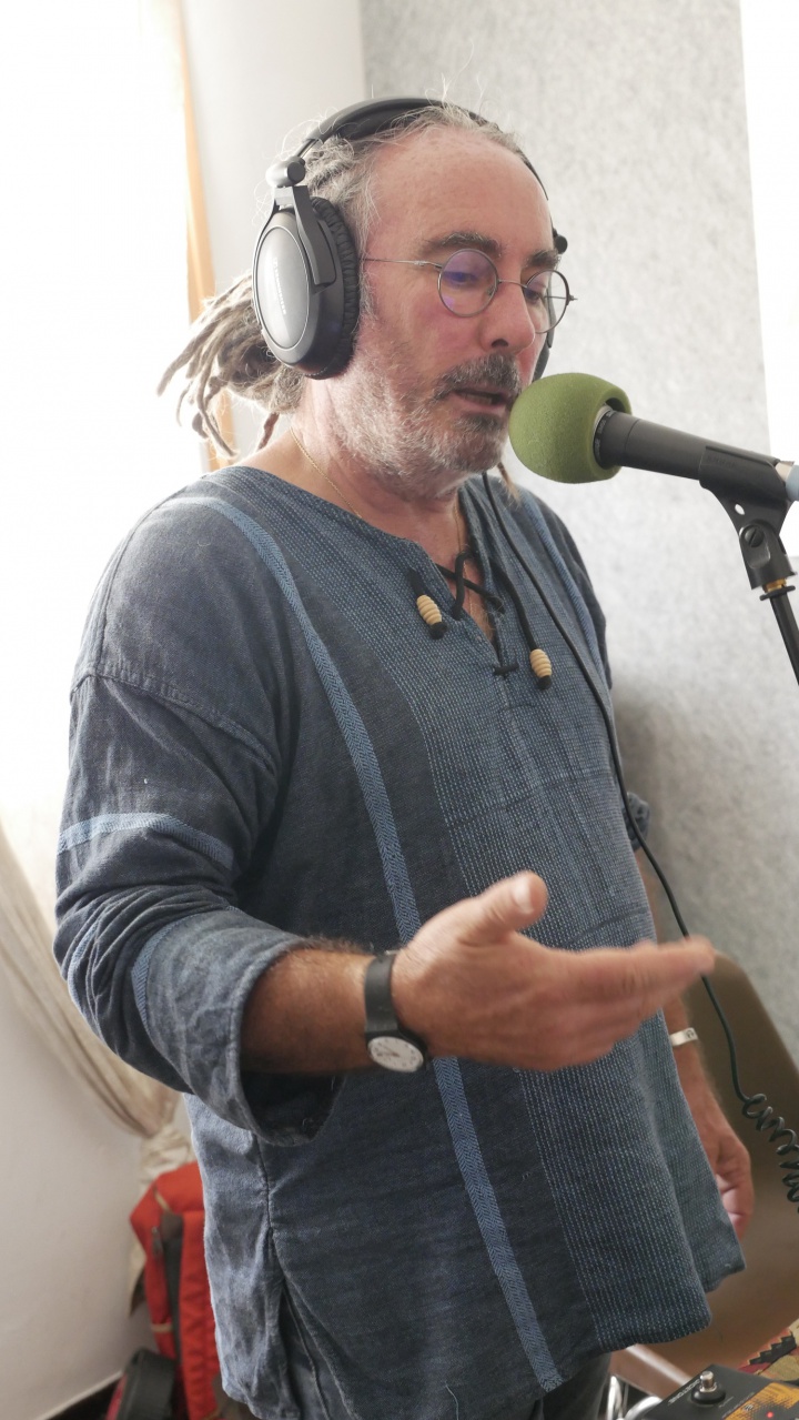 L'univers de Jean-Luc Irondelle est peuplé de toute sortes de choses toujours très utiles. Lui, ce sont les chansons et la musique jamaïquaine qui le font voyager. De Kingston en passant par l'Afrique il est imprégné de cette musique toujours envoûtante. La poésie mise sur des musique rasta est une invitation au voyage avec ou sans volutes... Quelquefois la frontière est souvent ténue, mais Jean-Luc sait avec maîtrise usité de tournures qui ne sont pas "à l'emporte pièce" pour importer des mots de la poésie du XIXème siècle. Jean-Luc est venu à Fréquence mistral avec son pesant de mots et il a chanté en direct pour notre plus grand plaisir. Je vous propose de faire un bout de route avec lui dans l'émission "A micros ouverts". Jean-Marc Léca