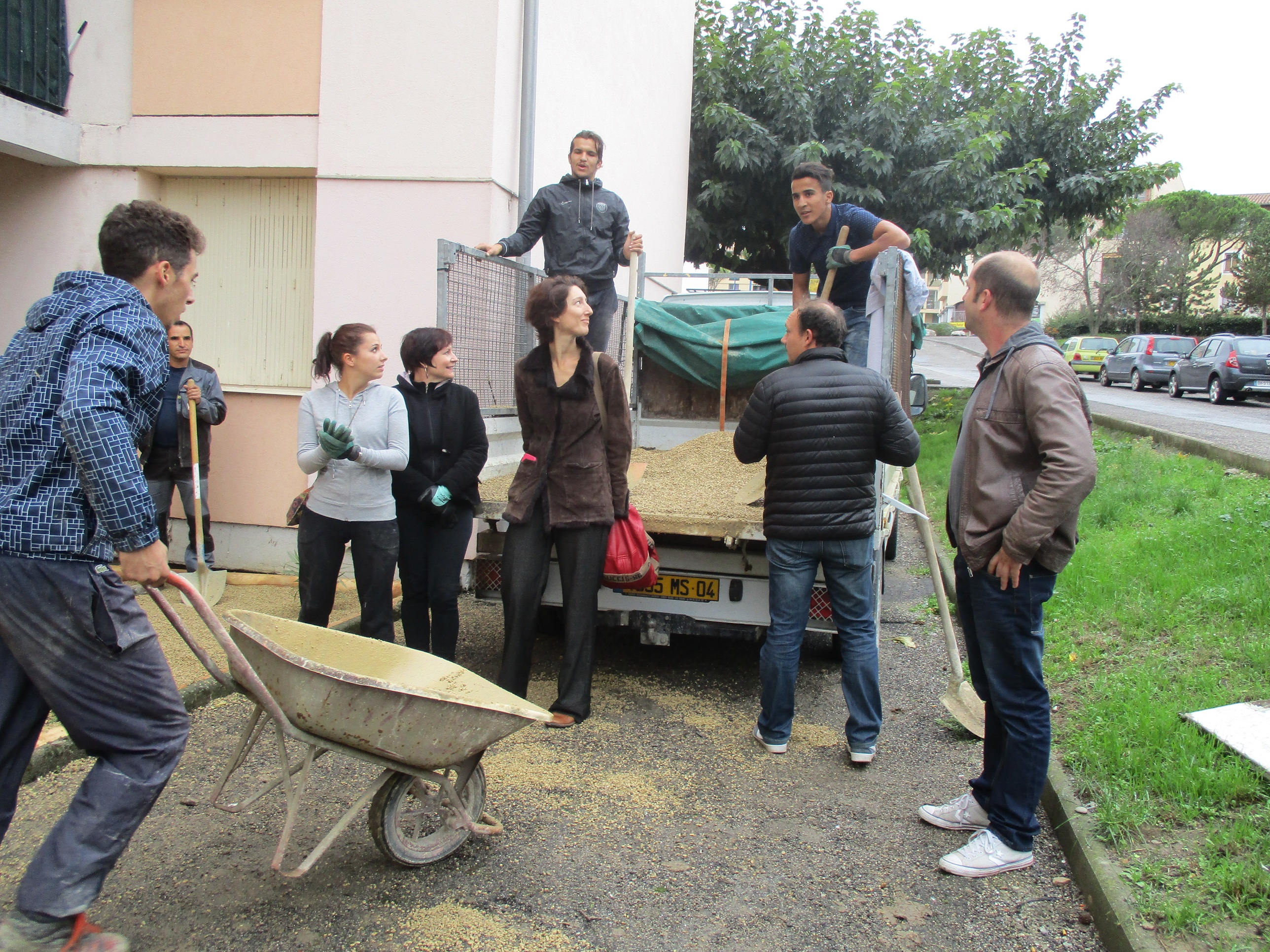 Pendant 4 jours, le chantier éducatif « Espaces verts » commandé par Habitations de Haute-Provence a permis des plantations et embellissements à la Trinque d’Isnard. Sous la houlette de l’équipe du service de prévention spécialisé, du responsable des espaces verts de H2P et de l’association présence verte service, Zorah, Laïd, Ilyes et Fernando ont mis la main à la pâte pour effectuer et valoriser des plantations dans leur résidence. Volontaires, ces jeunes, en difficultés sociales, sont suivis par l’ADSEA qui dans cette opération les met en contact avec le monde du travail. Présentations des droits et devoirs, horaires, couverture santé sont autant de découvertes pour ces Manosquins et l’issue du chantier éducatif, même s’il est très court restera comme une bonne expérience et une ligne sur un CV. Une mention d’autant plus intéressante que certains d’entre eux ont touché à un domaine qui les intéresse au point d’envisager une future carrière dans les espaces verts. A l’heure où ils étalaient du gravier sur les plantations d’arbustes, je vous propose d’écouter trois intervenants de ce chantier : François Bouyala, chef de service de l’ADSEA ainsi que Benoît Gebelin responsable des espaces verts de H2P et enfin, Laïd Benfherat, un Manosquin de 19 ans, intimidé par mon micro mais fier comme ses amis d’avoir réalisé un bon travail.