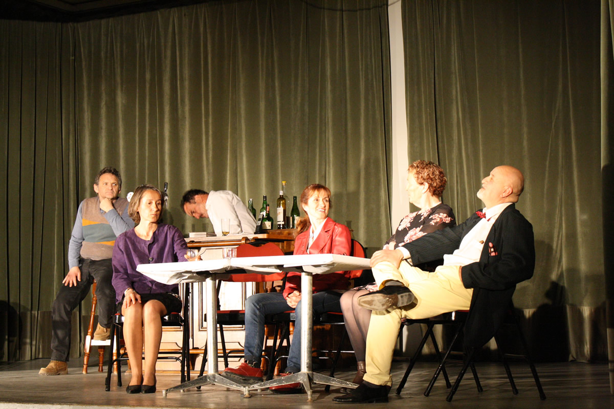 A travers une reprise du film « un air de famille » d’Agnès Jaoui et Jean-Pierre Bacri, la troupe du foyer rural de Salignac, a démontré que le monde des comédiens amateurs était finalement pas si éloigné de celui des professionnels, en tout cas sur les planches... « Un air de famille » est une comédie décapante qui dépeint un sujet que tout le monde connait : La famille ! Mais ici c’est la famille dans tous ces états… Entre le fils chéri, la fille désinvolte et rebelle, puis le demi-raté de la famille, maman rencontre bien des difficultés à considérer ses enfants sur un pied d’égalité. Néanmoins, tous se retrouvent les vendredis soir au bar du dernier, pour partager un moment de convivialité autour d’un bon repas… Mais ce soir là, rien ne va plus ! Hubert de Pourquery et ses comédiens, ont livré à Sisteron une prestation remarquable et originale de cette fresque fraîche et démoniaque, permettant au public de rire aux éclats et se délecter de quelques caricatures, parfois pas si éloigné de la réalité ! Hubert de Pourquery est au micro de Patrice Vernet, il évoque la troupe, ses comédiens ainsi que la pièce interprétée pour la bonne cause, la recette étant reversée à Terre des Hommes pour ses actions de bienfaisance.Hh
