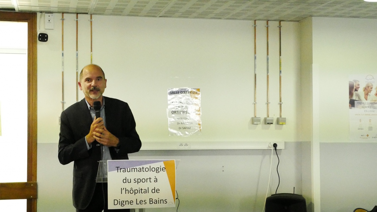 La traumatologie dans l’exercice du sport a été évoquée à l’hôpital dignois. L’établissement a accueilli quatre des cinq sportifs locaux champions du monde dans leur spécialité : Antoine Méo en moto enduro, Mickael Maschio (moto cross), Nicolas Lebrun (triathlon Xterra) et le parapentiste François Ragolski que nous entendrons dans un instant. La spécialiste du Stand Up Paddle Olivia Piana était représentée par ses parents. Chacun vit avec les risques d’accidents, de fractures et leurs conséquences. L’hôpital devenant parfois un lieu de passage obligé…