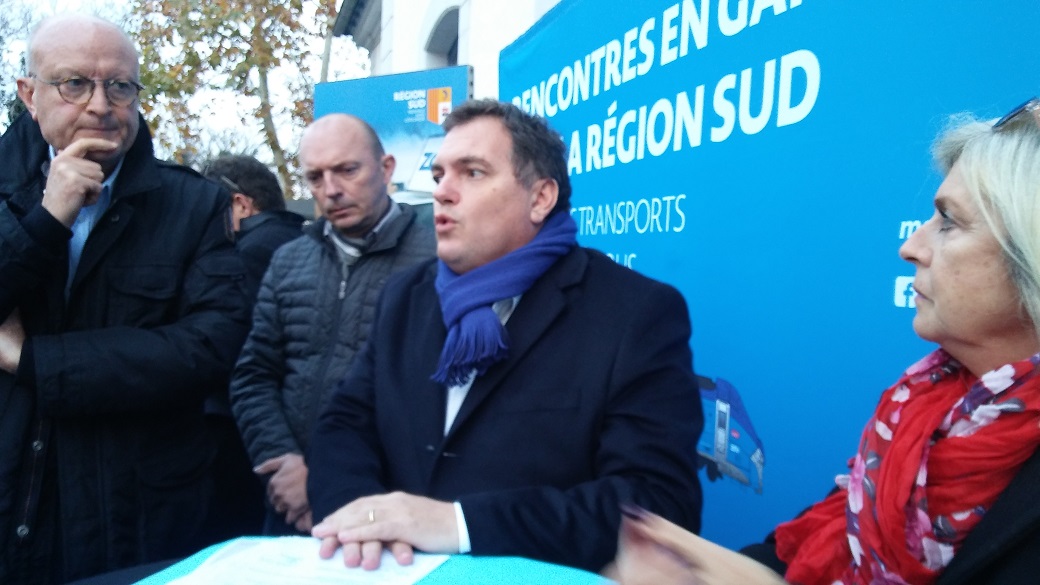Ainsi, outre Nice, Marseille, Avignon ou cette semaine Gap, le vice président délégué à la sécurité, aux transports et à l’intermodalité Philippe Tabarot était à Manosque pour informer et rencontrer les usagers. Il a salué les dispositifs, médiateurs et agents de sécurité et de contrôle conjoints SNCF-Région et qui permettent de rassurer les voyageurs dans les trains et gares mais aussi réduisent considérablement les fraudes. Pas négligeable lorsque l’on sait que les transports sont le premier budget du Conseil régional avec 611 M€ dont 365 pour les seuls trains express régionaux et 100 M€ d’investissements sur les lignes.