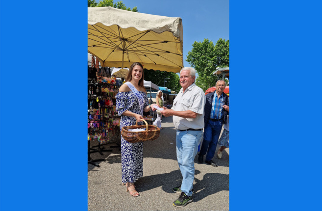 La 1ère dauphine Miss Alpes du Sud 2023 sur le marché de Digne-les-Bains.