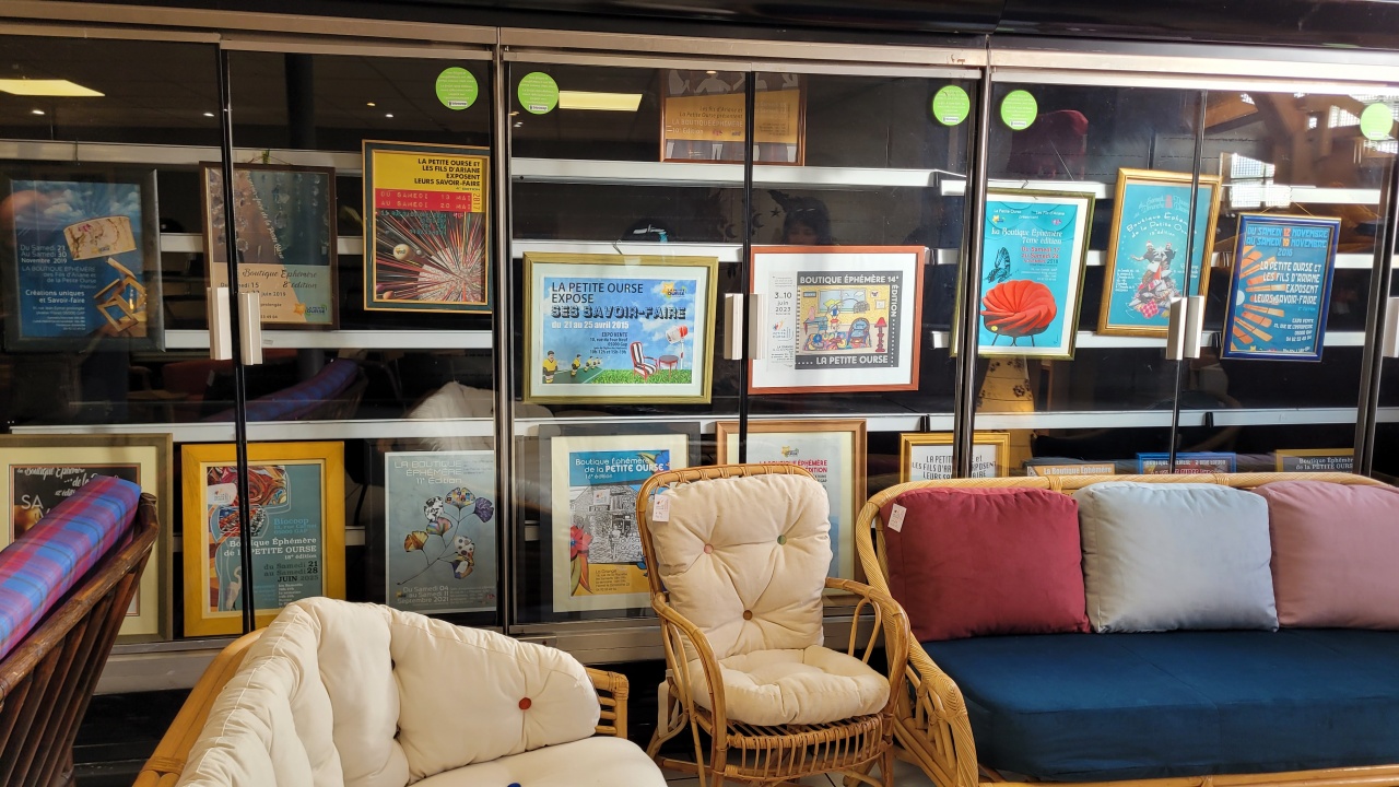 Nous nous sommes rendus à l'ouverture, l'occasion de rencontrer Anne, encadrante en tapisserie d'ameublement et co-organisatrice des boutiques. Un moment idéal pour échanger aussi avec Daniel, président de La Petite Ourse ; et avec Claude, administrateur de la Petite Ourse.