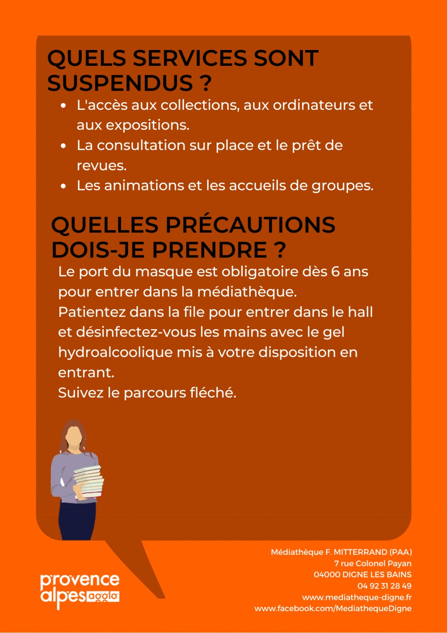 Suzel Badet Directrice de la Médiathèque de Digne les bains, et du réseau de lecture publique de Provence Alpes Agglomération (Digne les bains, Château-Arnoux et les Mées) présente au micro d'Odile Frison, la nouvelle organisation et les mesures sanitaires à respecter .