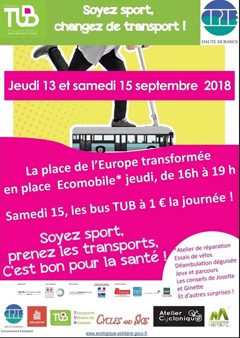 Ce jeudi 13 septembre, de 16h à 19h, la place de l'Europe se transforme en place Ecomobile à l'occasion de la semaine de mobilité durable. C'est cela dont nous parle aujourd'hui Célia Grimal Chargée de Mission en Education au Développement Durable à Environnement et Solidarité - CPIE Haute Durance.